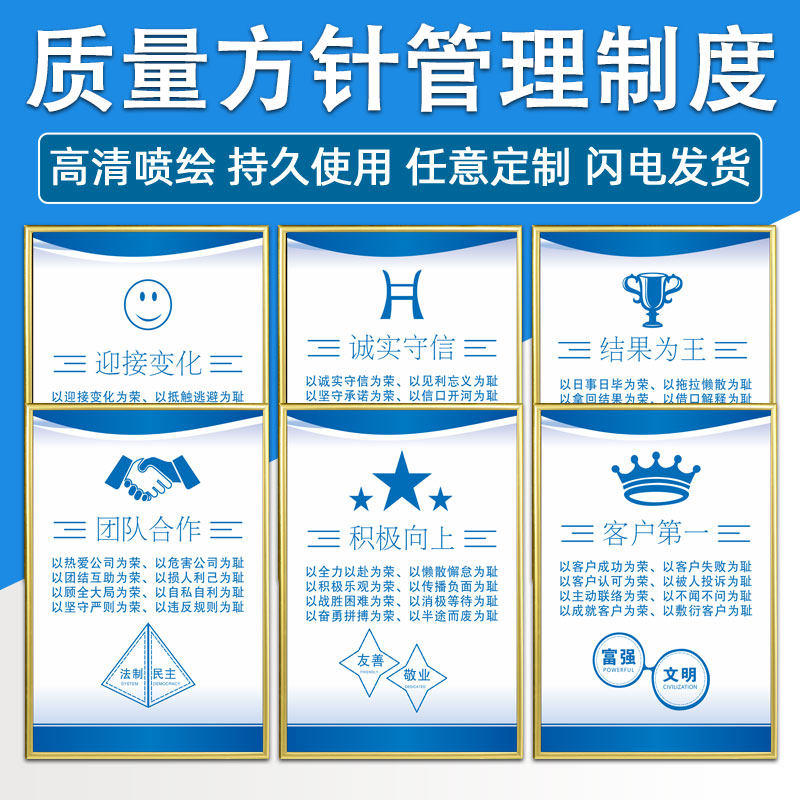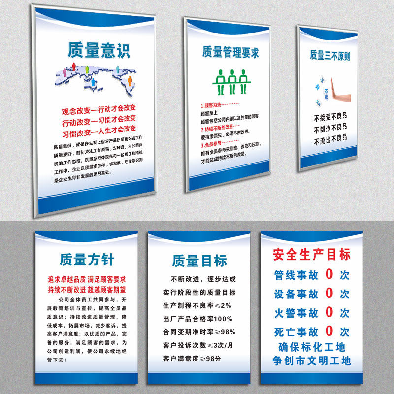 企业精益品质管理标语品质方针质量目标海报工厂车间文化宣传挂图PDCA 3A 3G管理看板展板墙贴安全生产标识牌