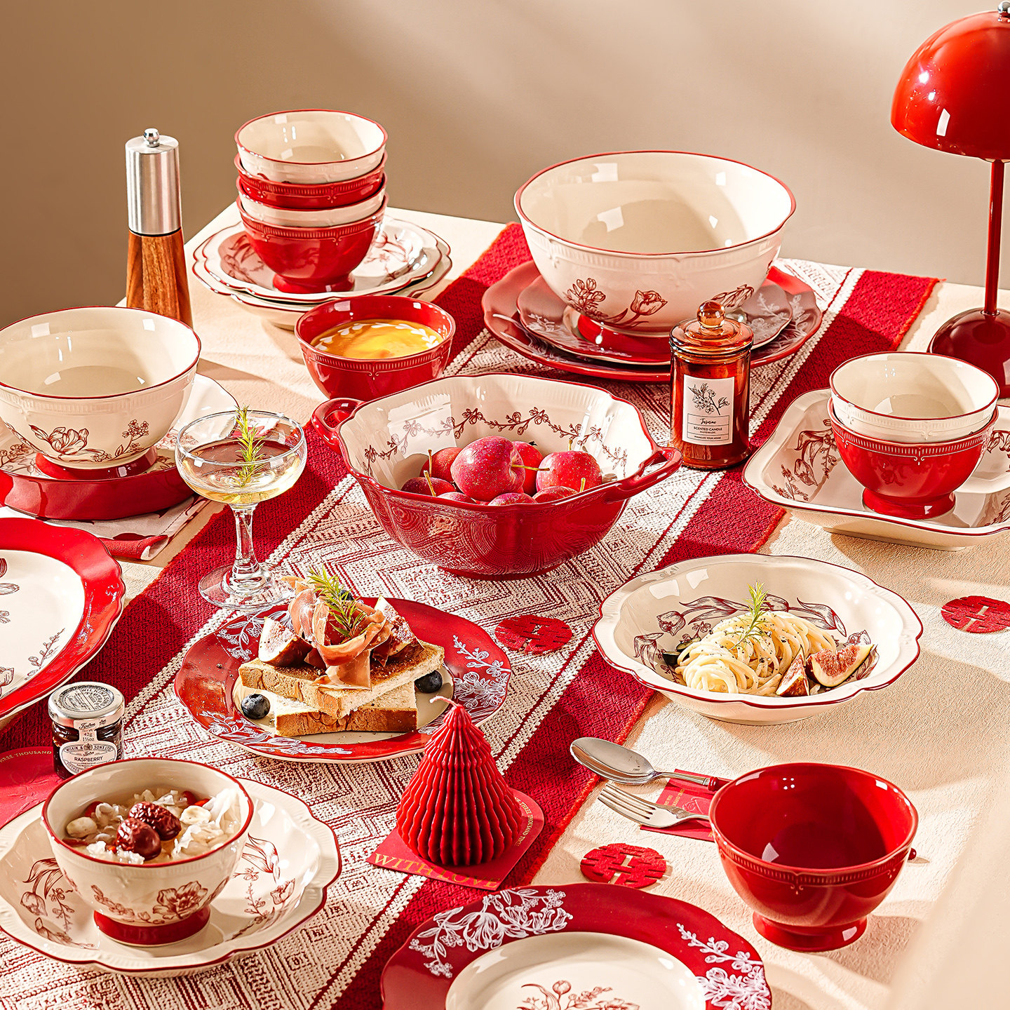 高档碗碟餐具陶瓷新婚礼物送新娘红色碗盘筷套装乔迁新居结婚礼盒