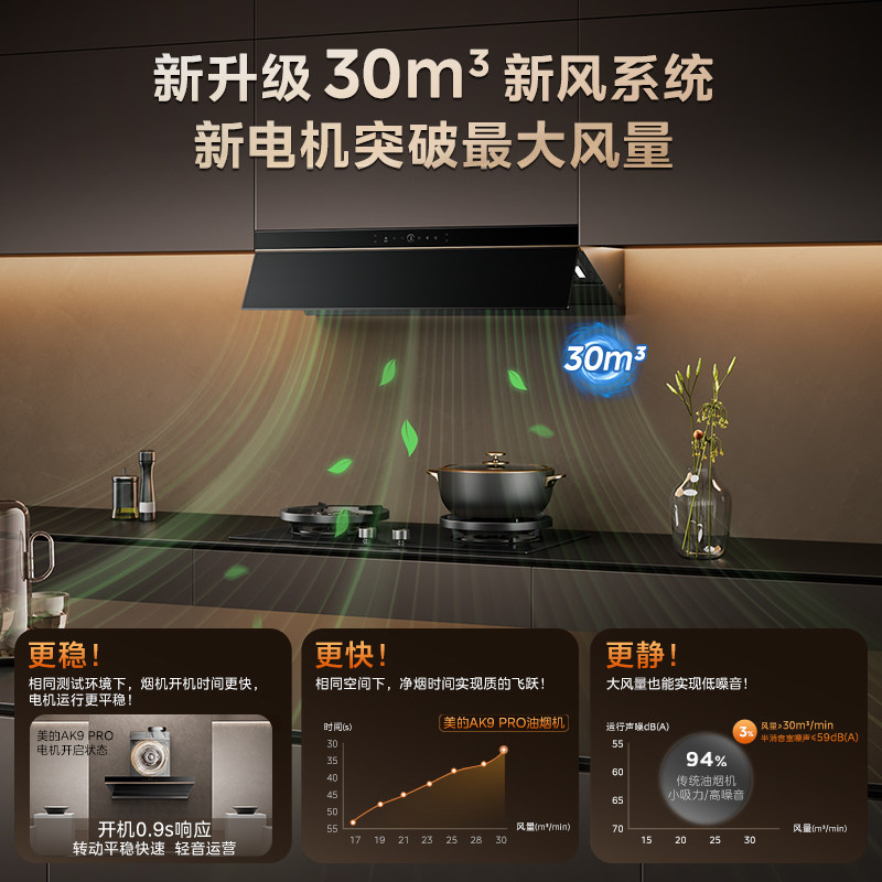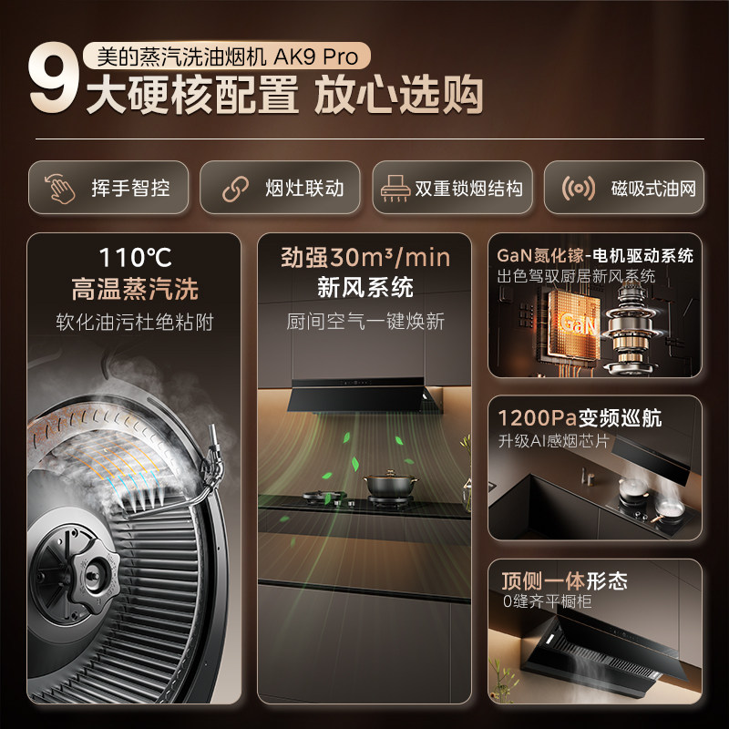 [AK7PRO升级版]美的蒸汽洗AK9PRO抽油烟旗舰机飓风家用厨房大吸力
