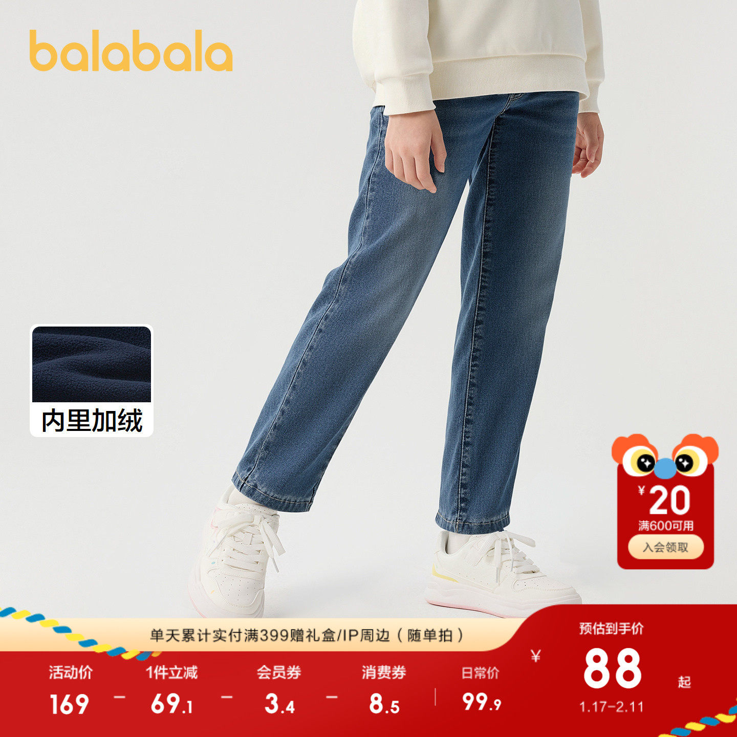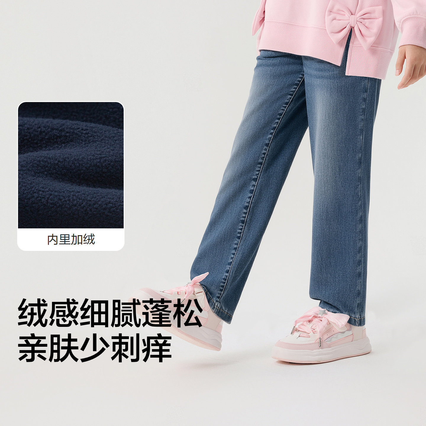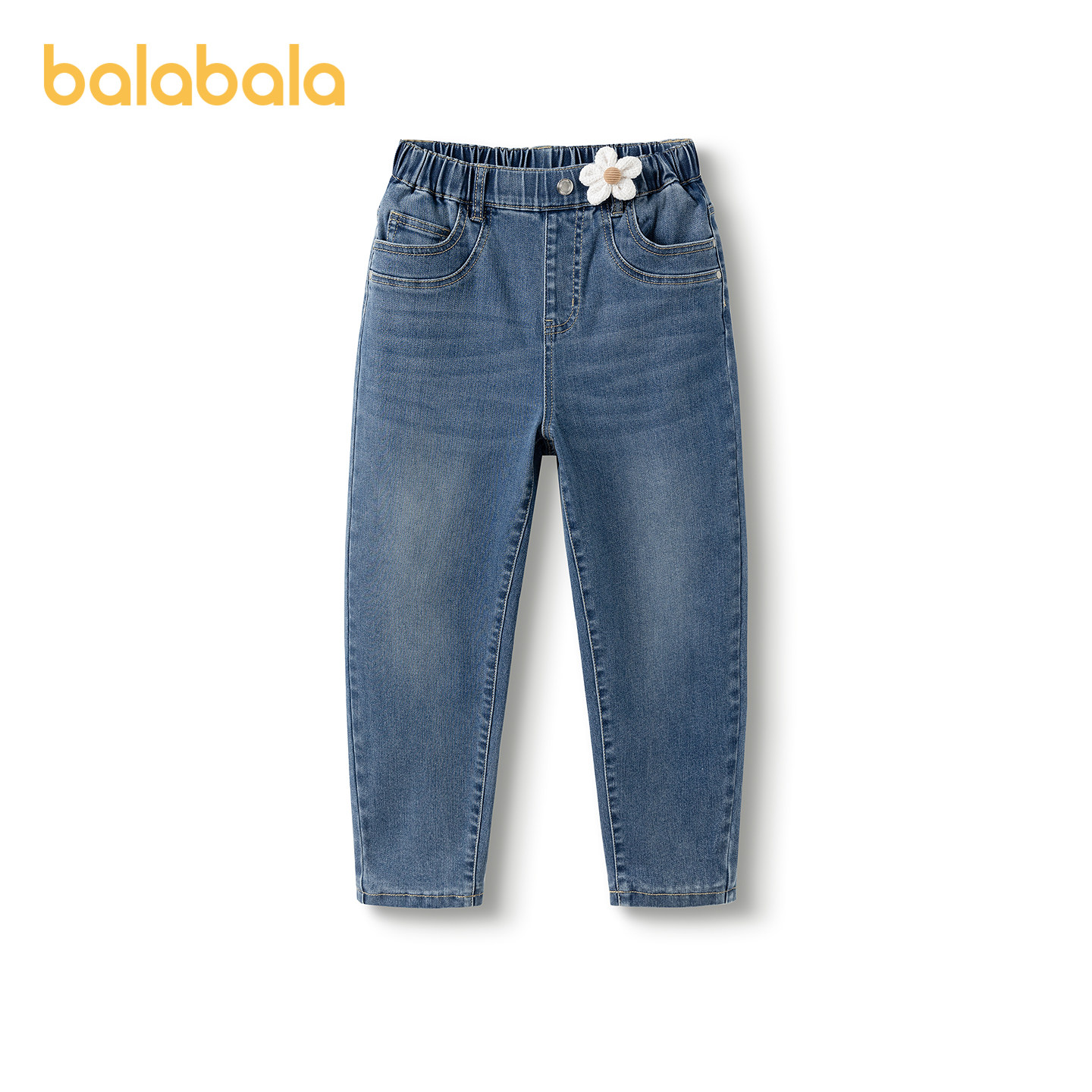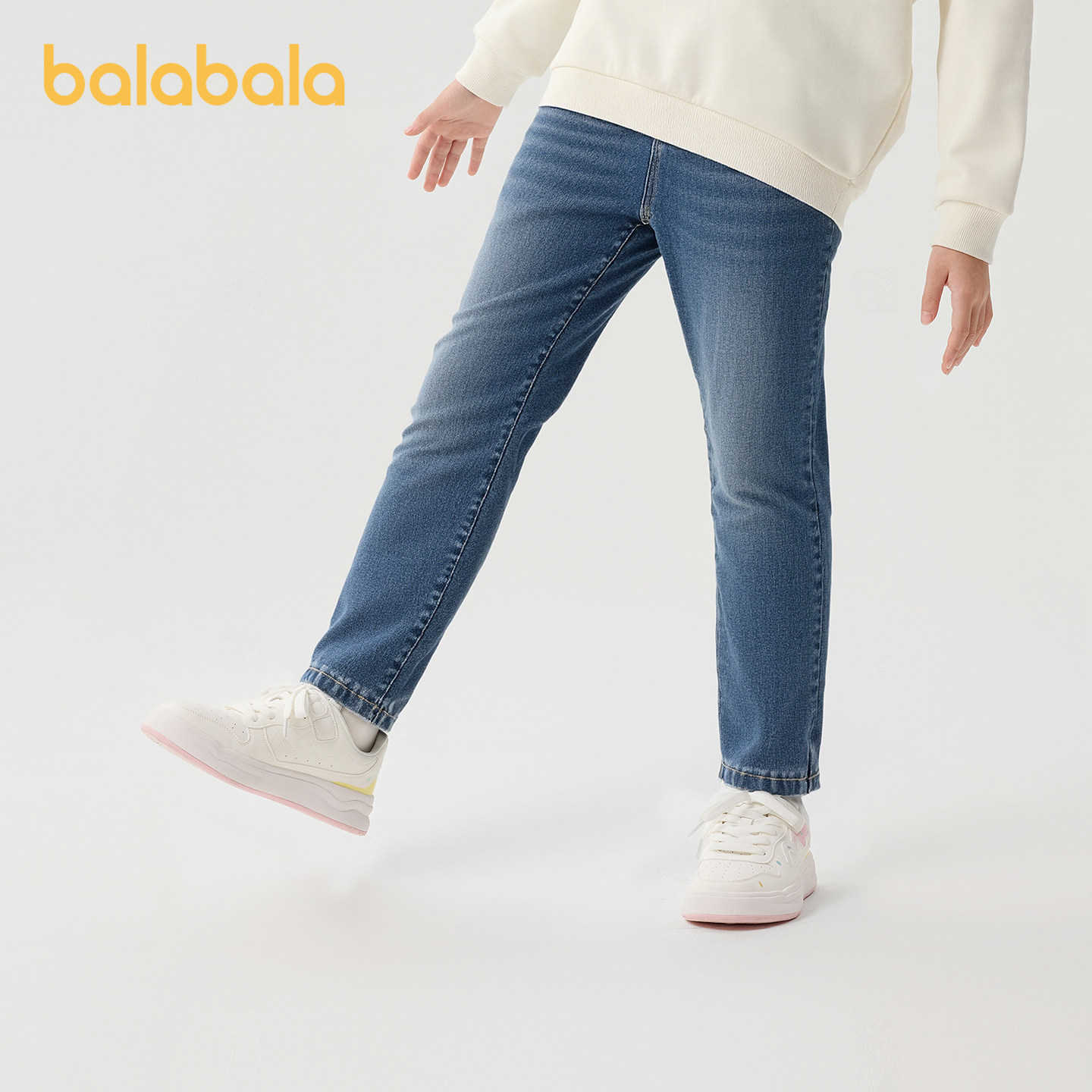 巴拉巴拉童装女童裤子冬装加绒牛仔长裤儿童舒适萝卜裤复古休闲潮