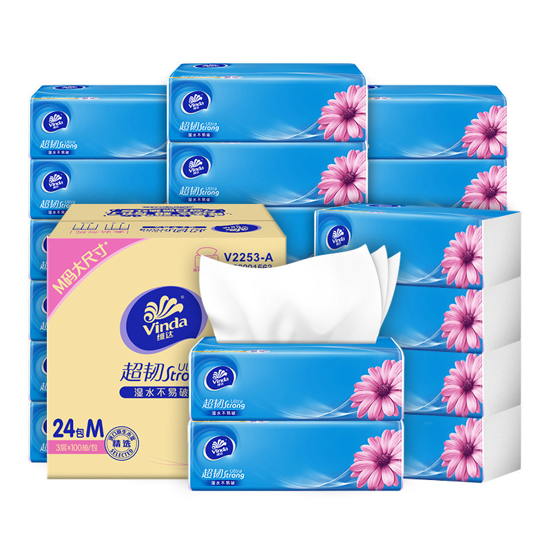 维达抽纸超韧24包48包整箱批发大包抽纸巾家用餐巾纸卫生纸擦手纸