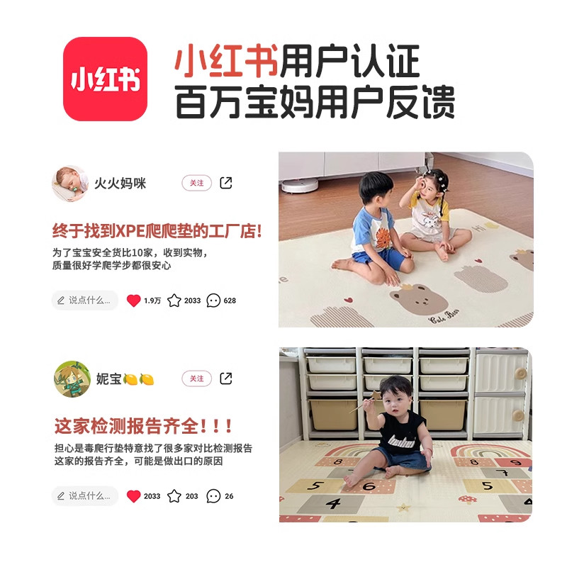 贝易婴儿爬爬垫加厚防摔家用宝宝无甲醛ixpe客厅儿童地垫爬行垫