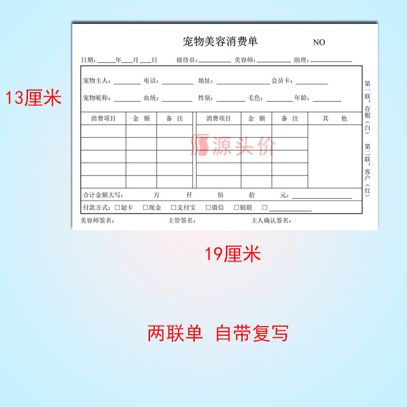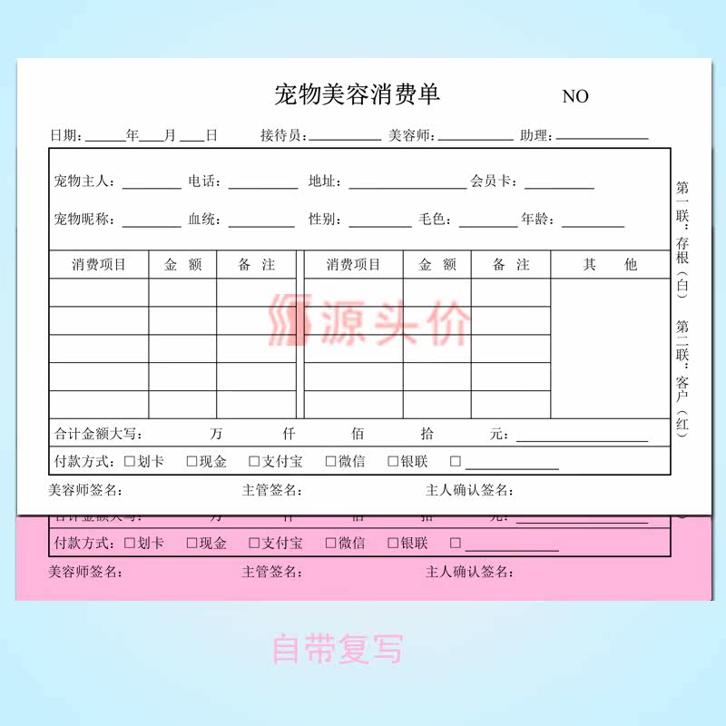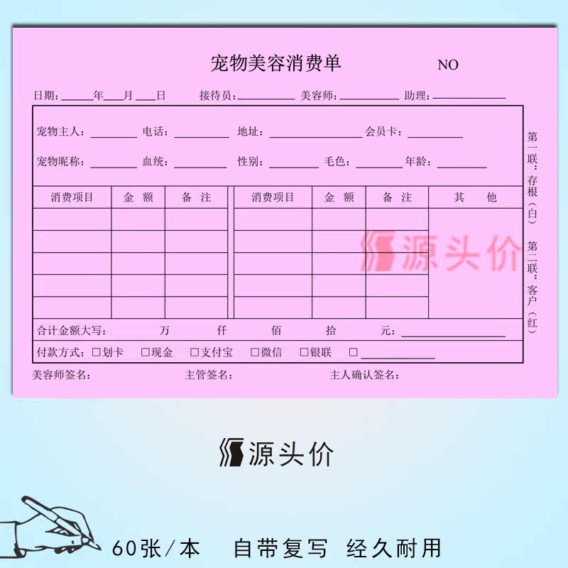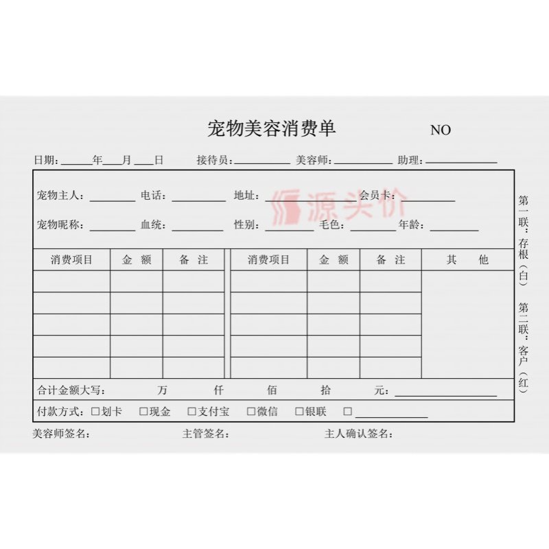 宠物美容单两联二连单据猫狗美容整形造型消费服务护理店商铺登记