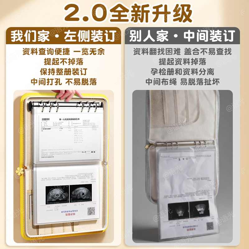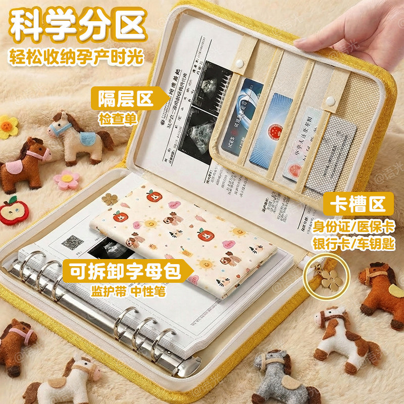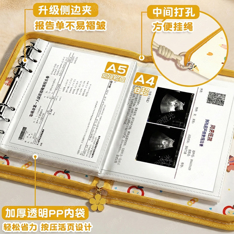 产检收纳册孕检收纳袋孕妇初期必备用品医院报告单孕期档案册带拉链产检本孕妈产检包检查资料记录册活页便携