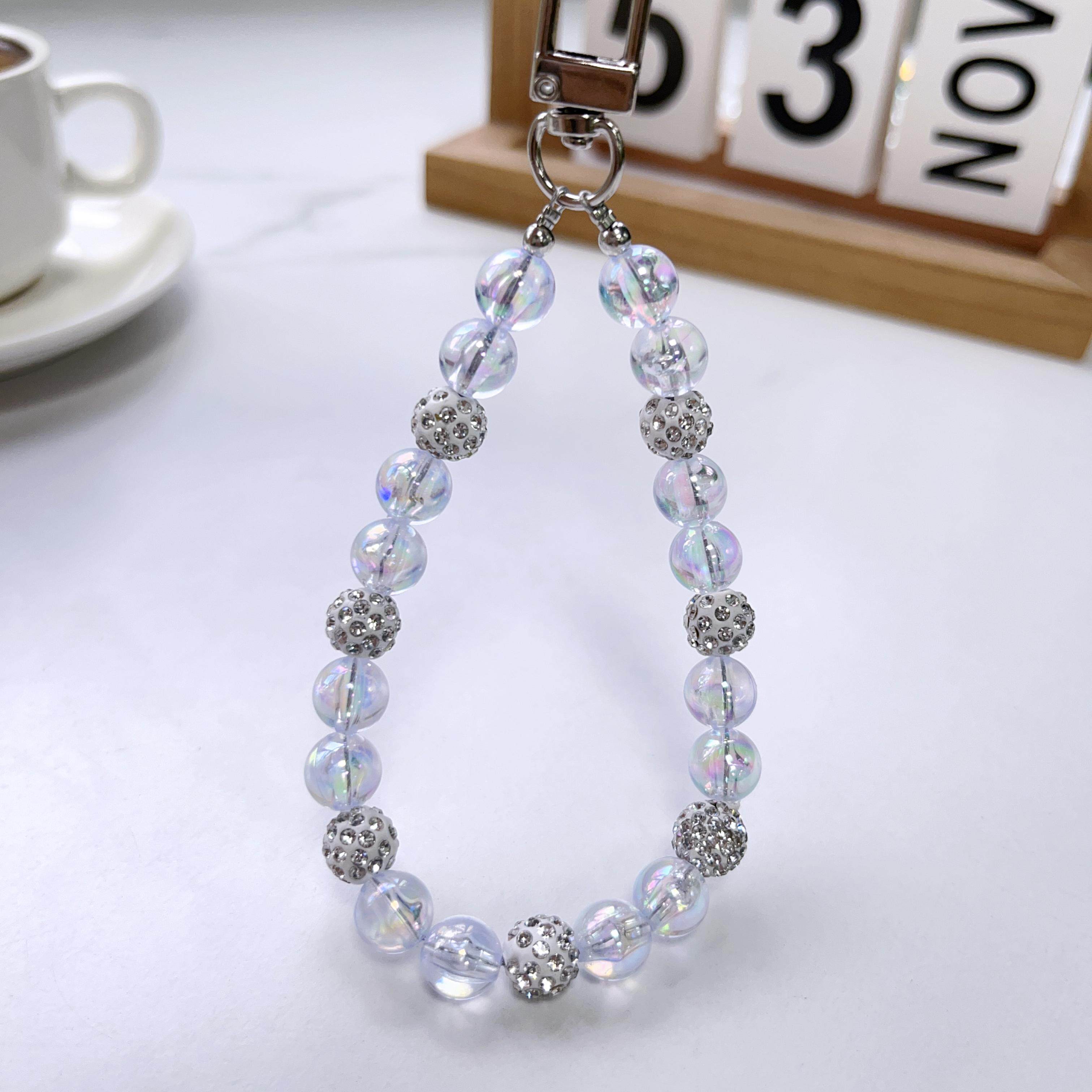 精致高颜值手机挂链 奢华水晶球创意女款diy手工串珠挂手腕配饰手机相机短款淑女风外出防丢防摔个性手机链条