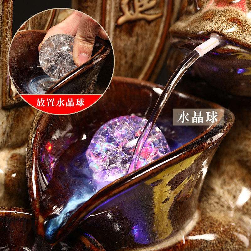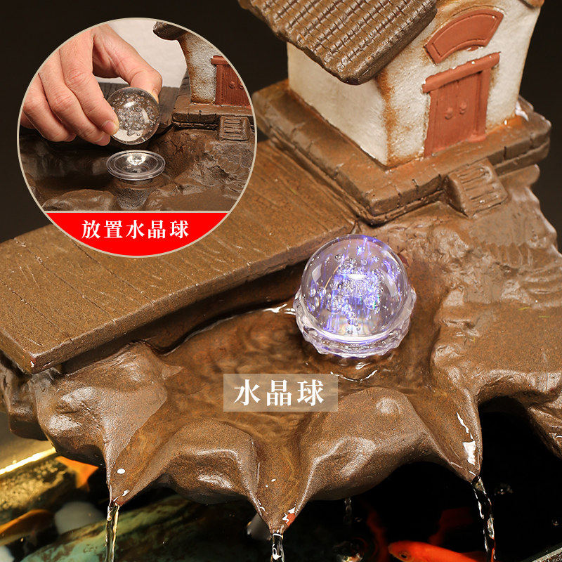 假山盆景球流水搭配冰裂球摆件轮转动水晶球滚珠饰
