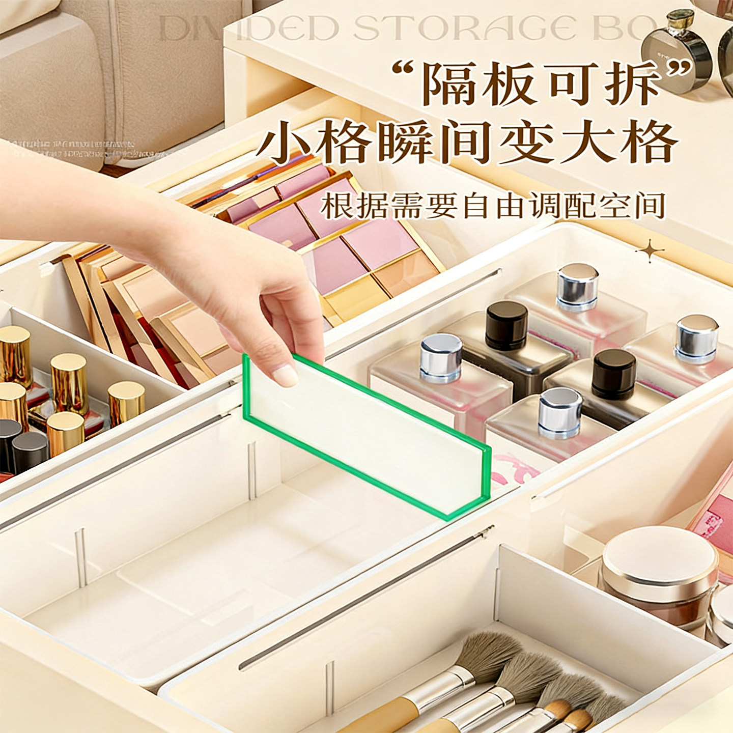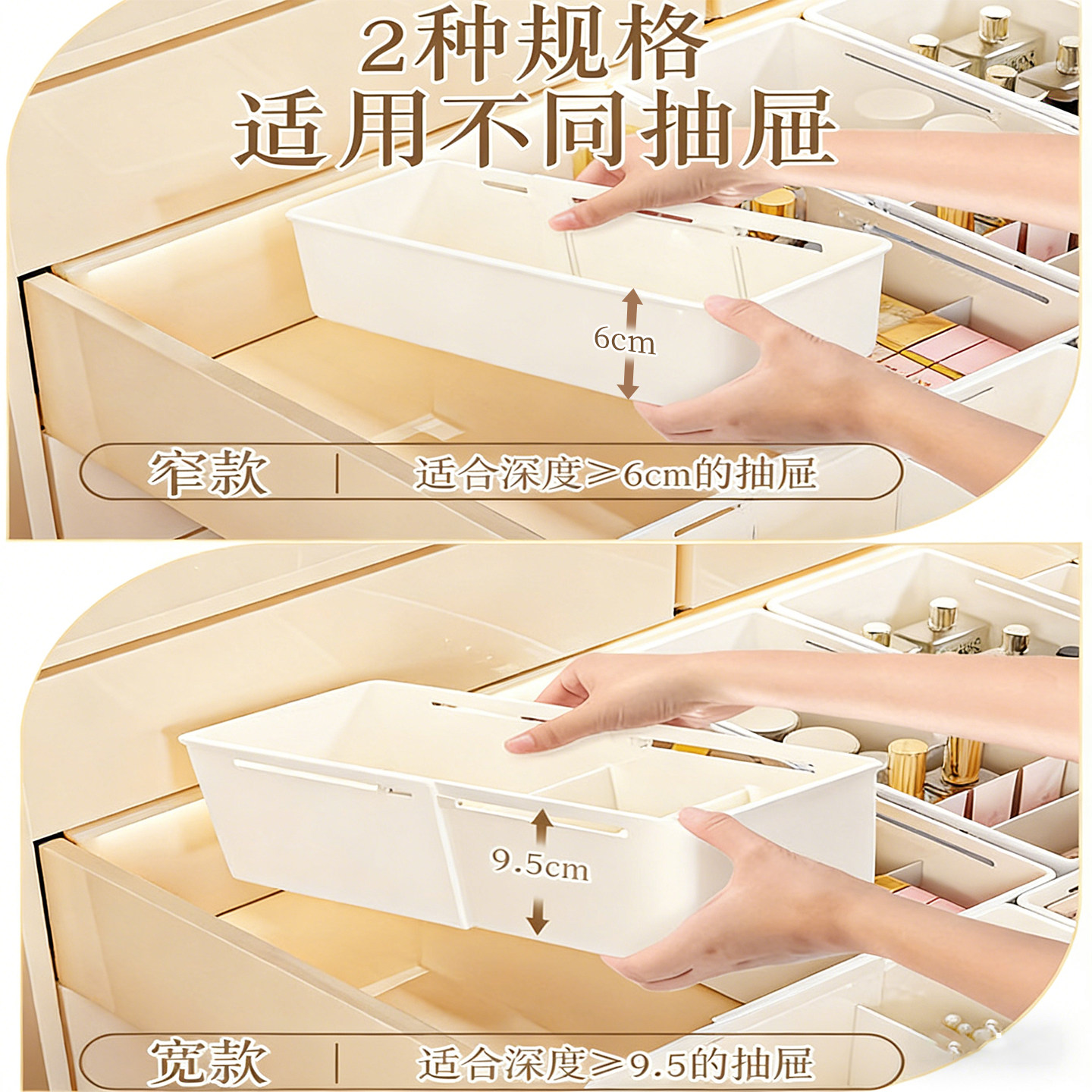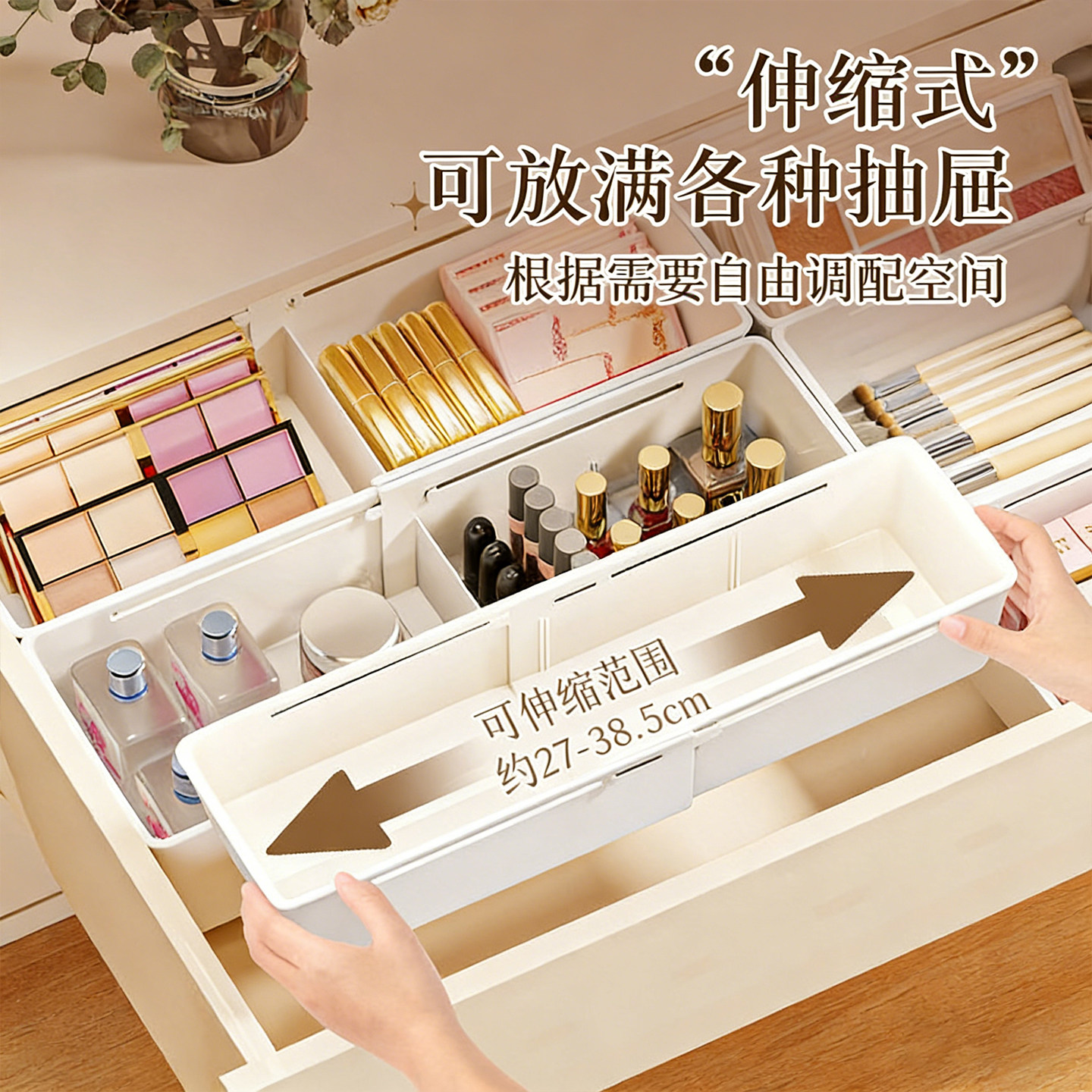 抽屉收纳盒分隔板整理化妆品梳妆台可伸缩分格长方形杂物整理盒子