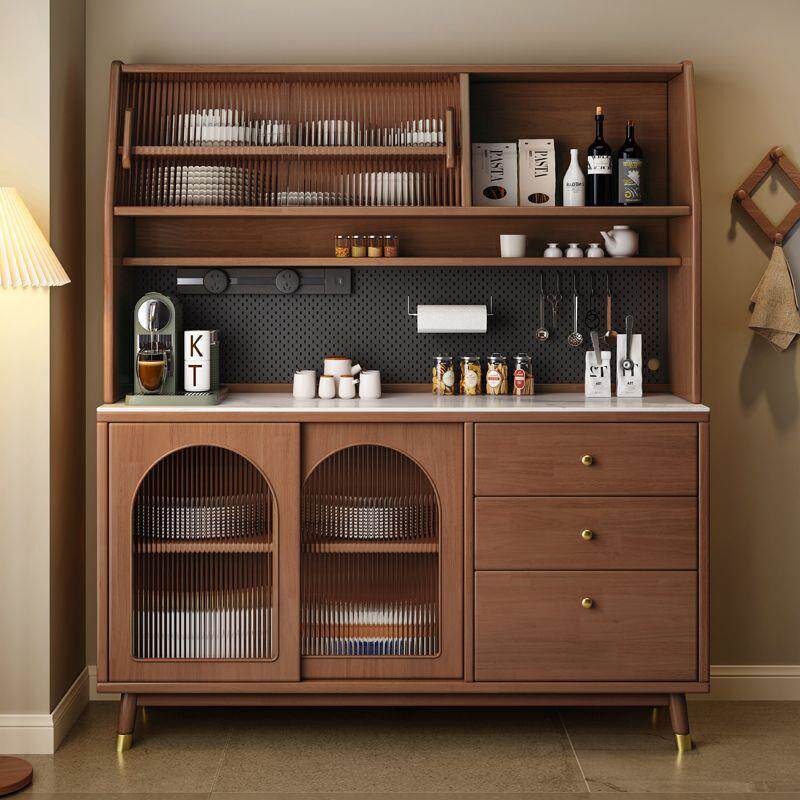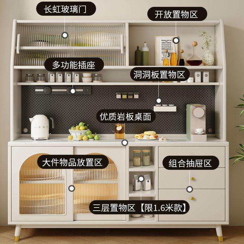 实木餐边柜中古风岩板置物柜靠墙茶水柜储物柜餐厅厨房橱柜收纳柜