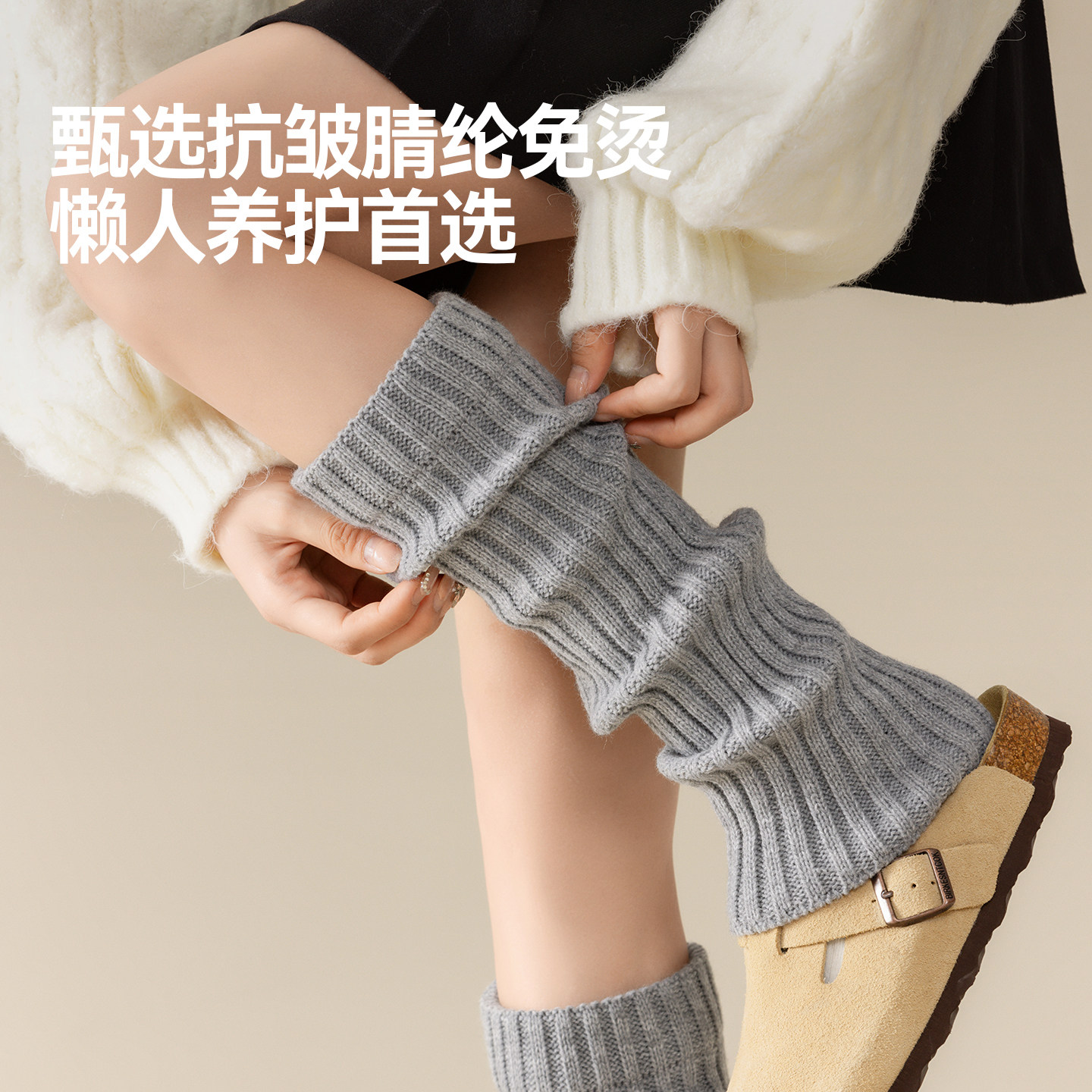 猫人新款袜套小腿袜堆堆袜子女秋冬季保暖加厚纯色雪地靴长筒腿套
