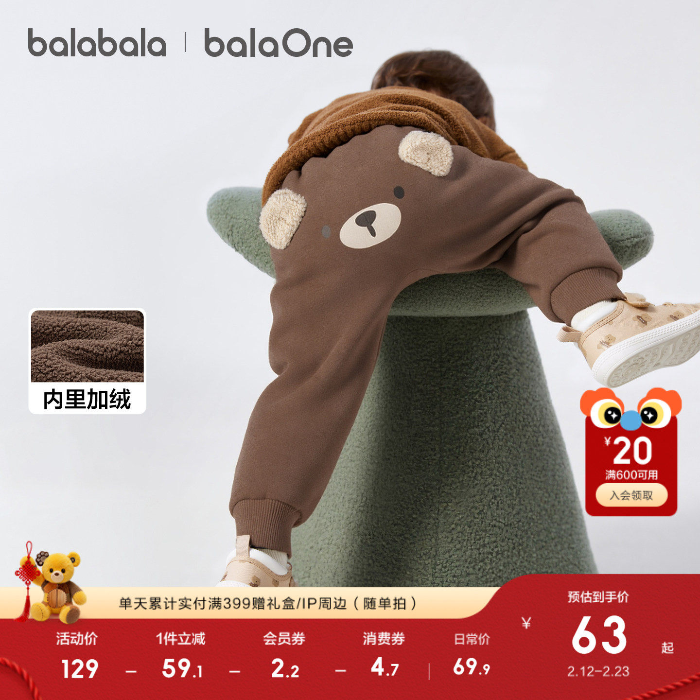 巴拉巴拉童装宝宝裤子2025冬装新款加绒婴儿pp裤男童儿童长裤保暖
