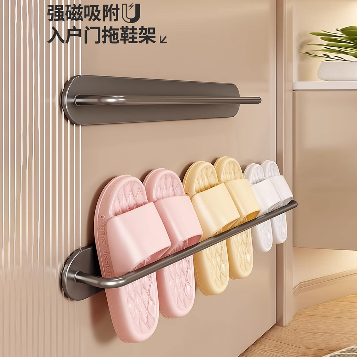 磁吸拖鞋架入户门后壁挂式收纳架门上免打孔鞋子置物架子承重碳钢