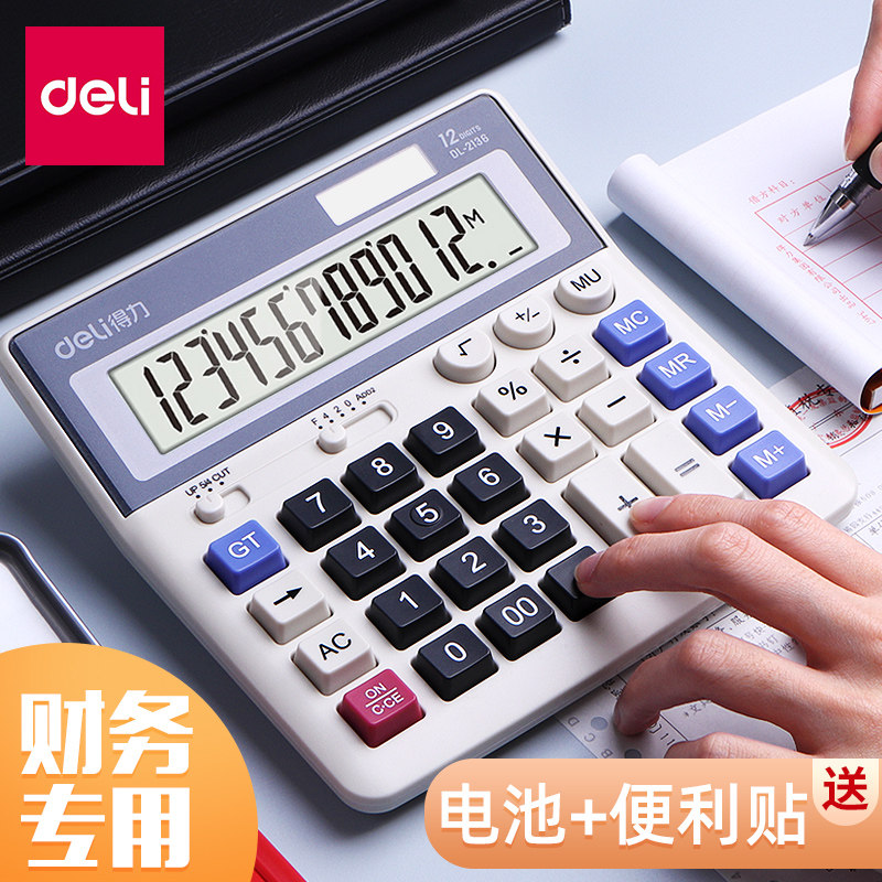 得力正品计算器财务会计专用大号电脑按键计算机办公用太阳能12位大屏记算器多功能语音办公室商用机算器包邮