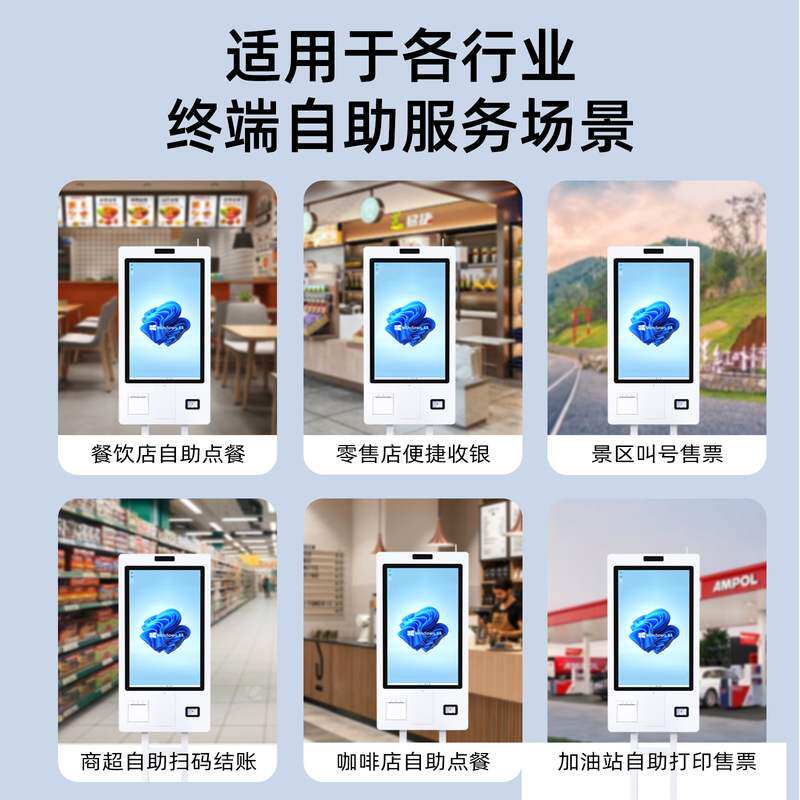 立柱自助收银机超市无人自助收银餐饮自助点单酒店查询机超市查价