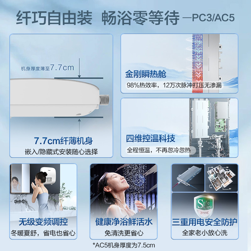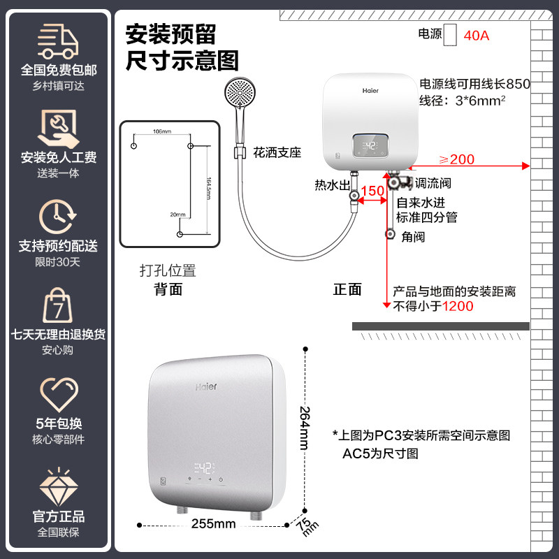 海尔即热式电热水器家用超迷你厨房卫生间小型速热恒温洗澡PC3