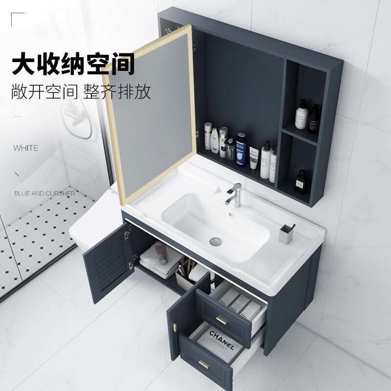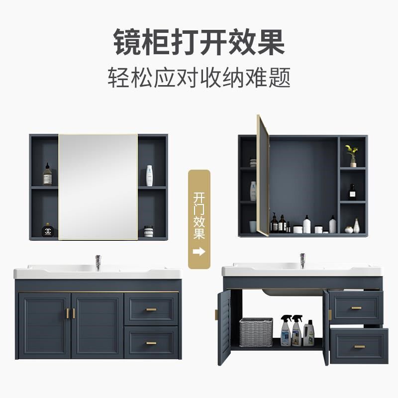 轻奢风太空铝智能镜挂墙式浴室柜卫生间洗手盆柜组合洗脸盆洗漱台