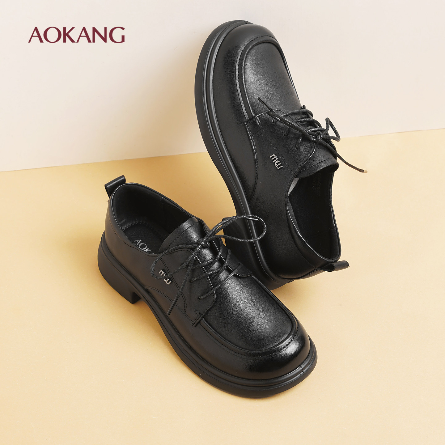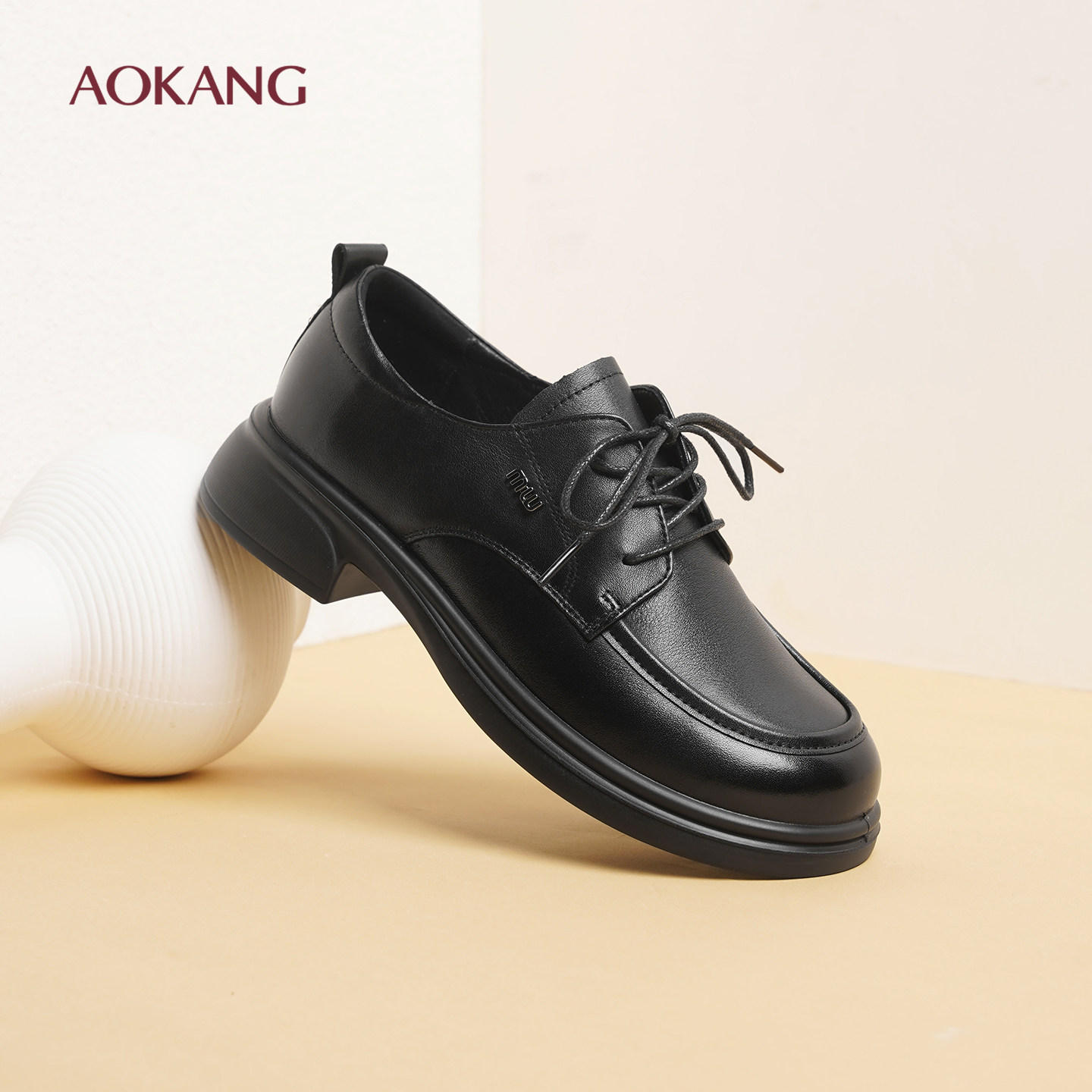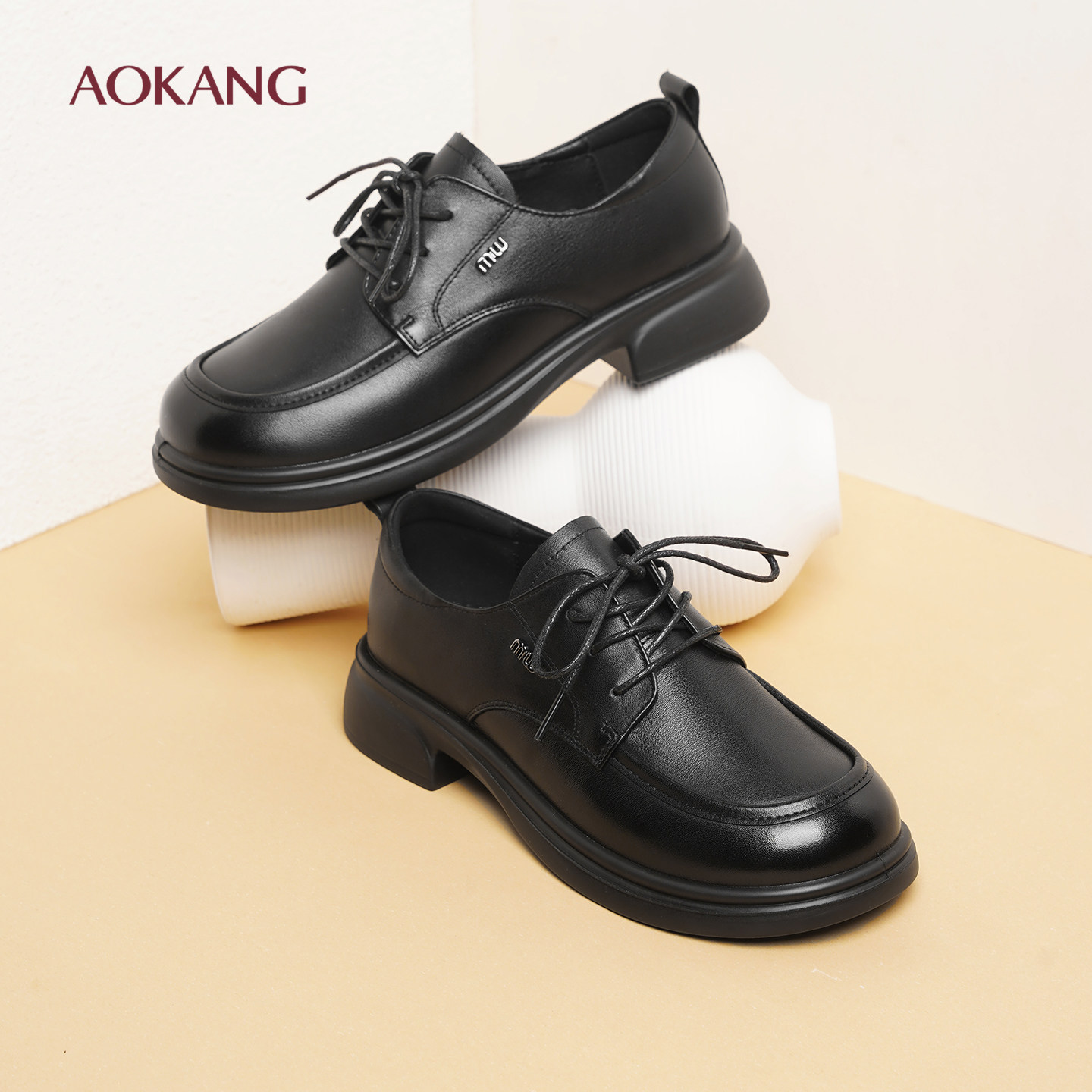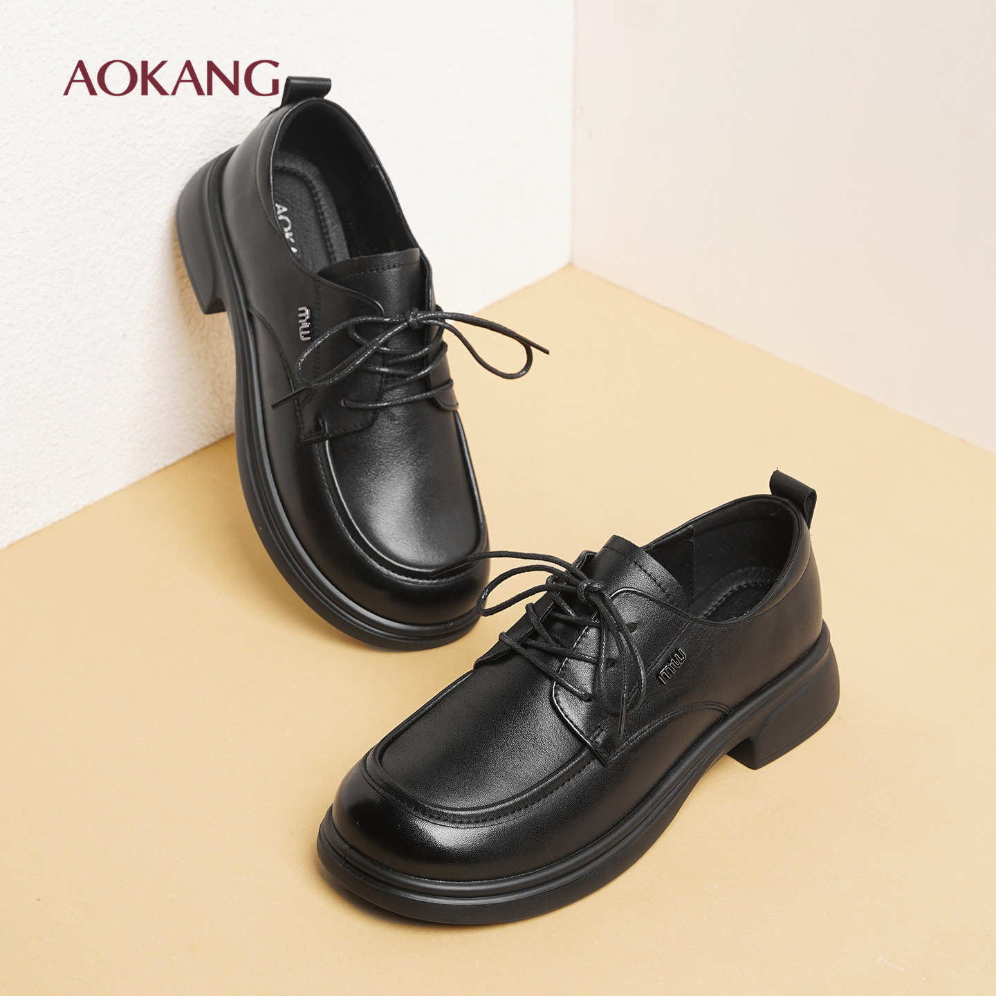 奥康 女鞋2025秋季新款小皮鞋真皮软底软面系带英伦风乐福鞋单鞋L