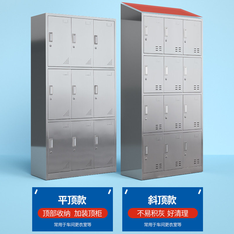 不锈钢柜子员工更衣柜斜顶柜储物柜办公柜文件柜器械柜医疗西药柜