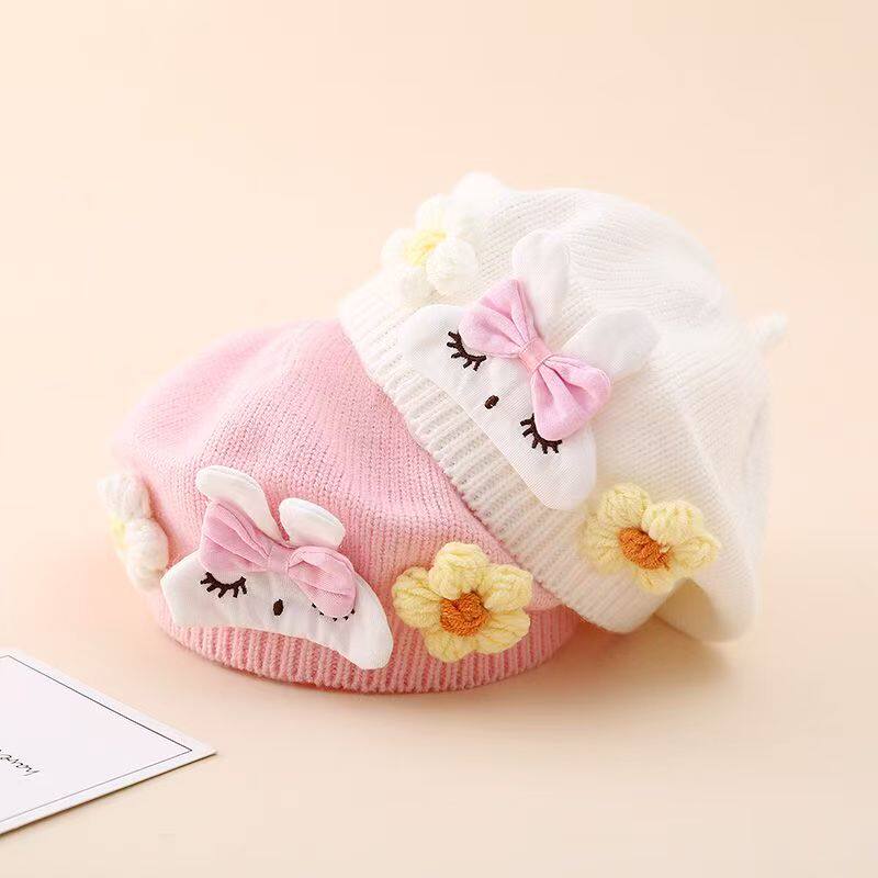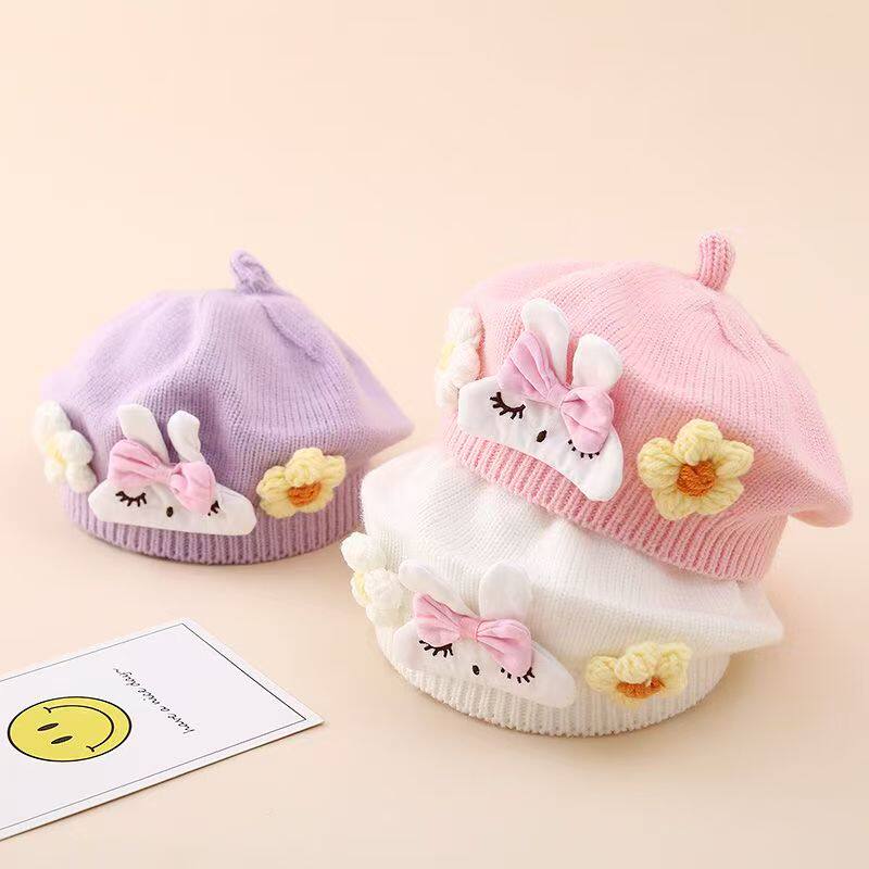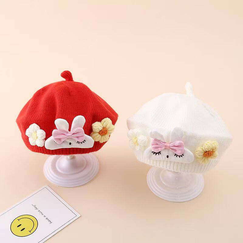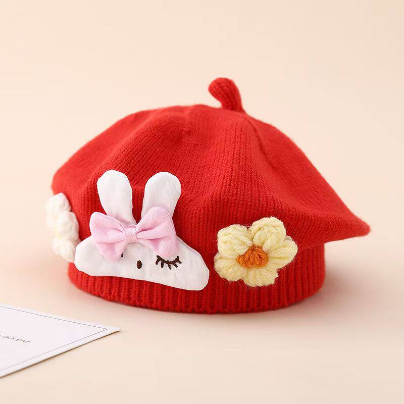 儿童贝雷帽女宝宝帽子秋冬季韩版小兔婴幼儿男童针织毛线画家帽潮