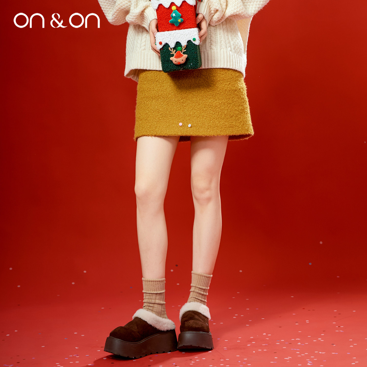 ON&ON/安乃安2025冬季新款韩系时尚设计感减龄百搭羊羔毛半身裙