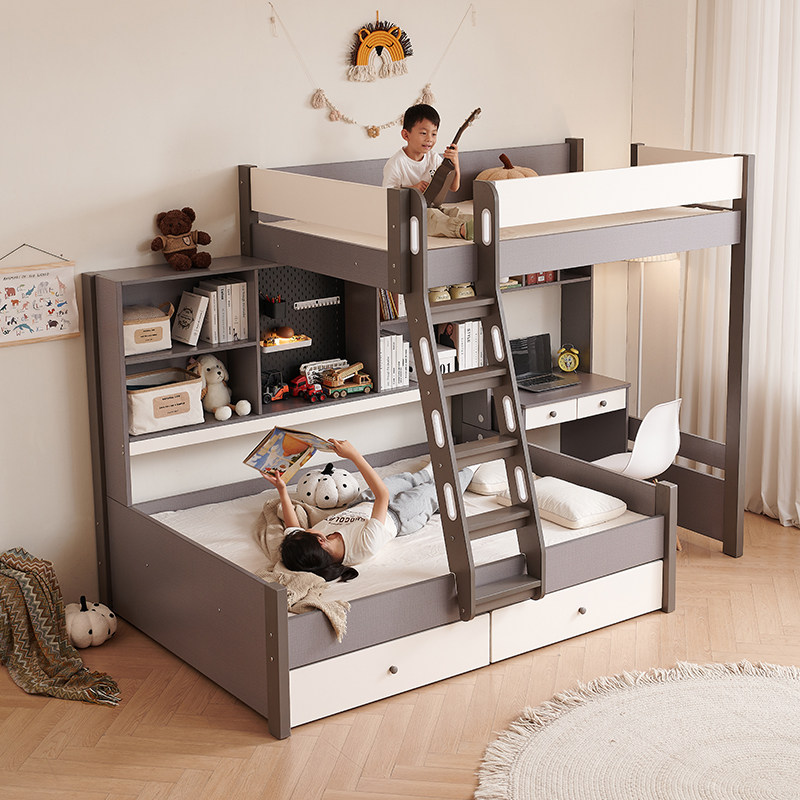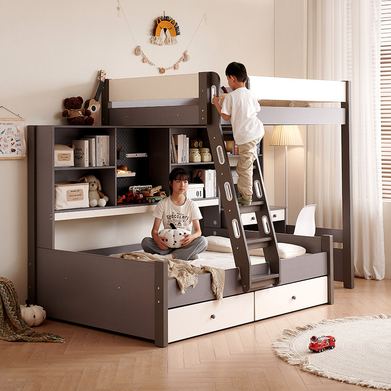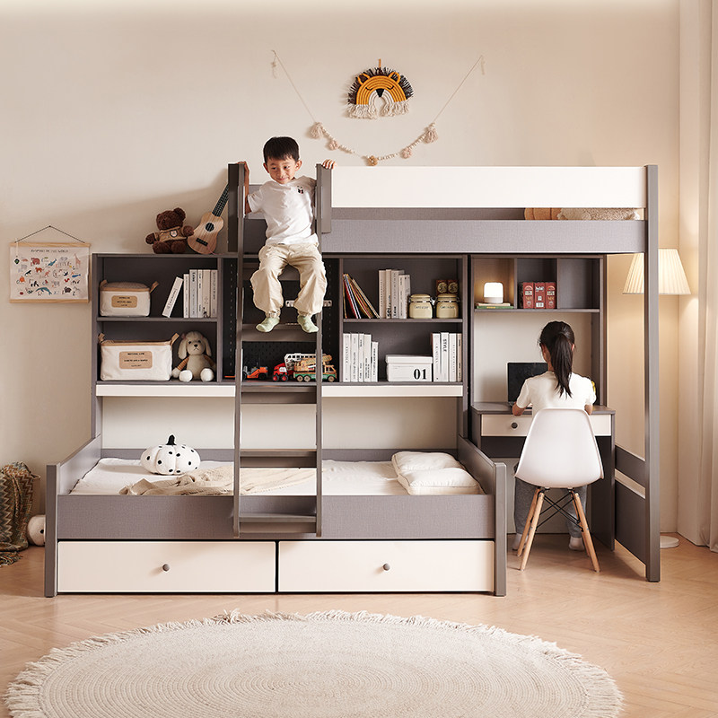 交错式上下儿童高低子母双层小户型姐弟带书桌衣柜一体组合双人床