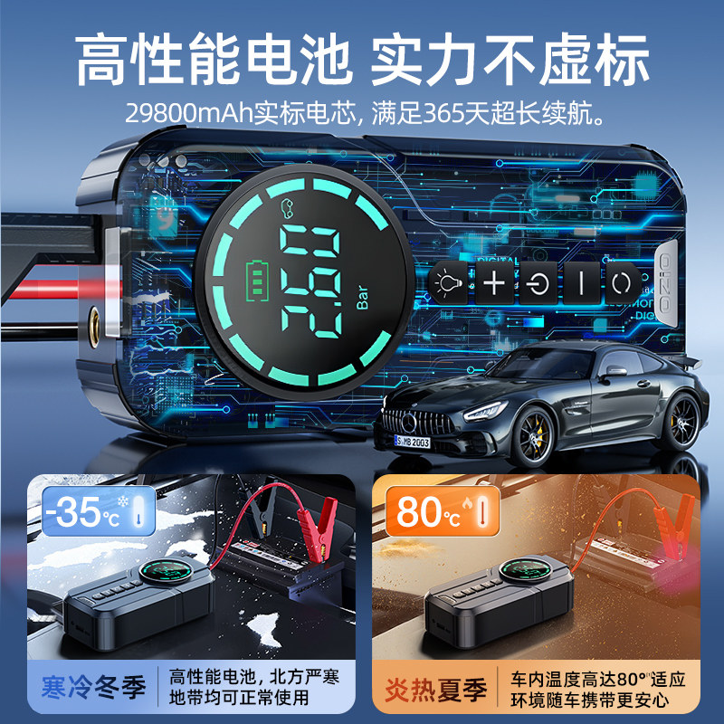 车载应急启动电源充气泵搭电宝一体机汽车专用无线便携电动打气泵