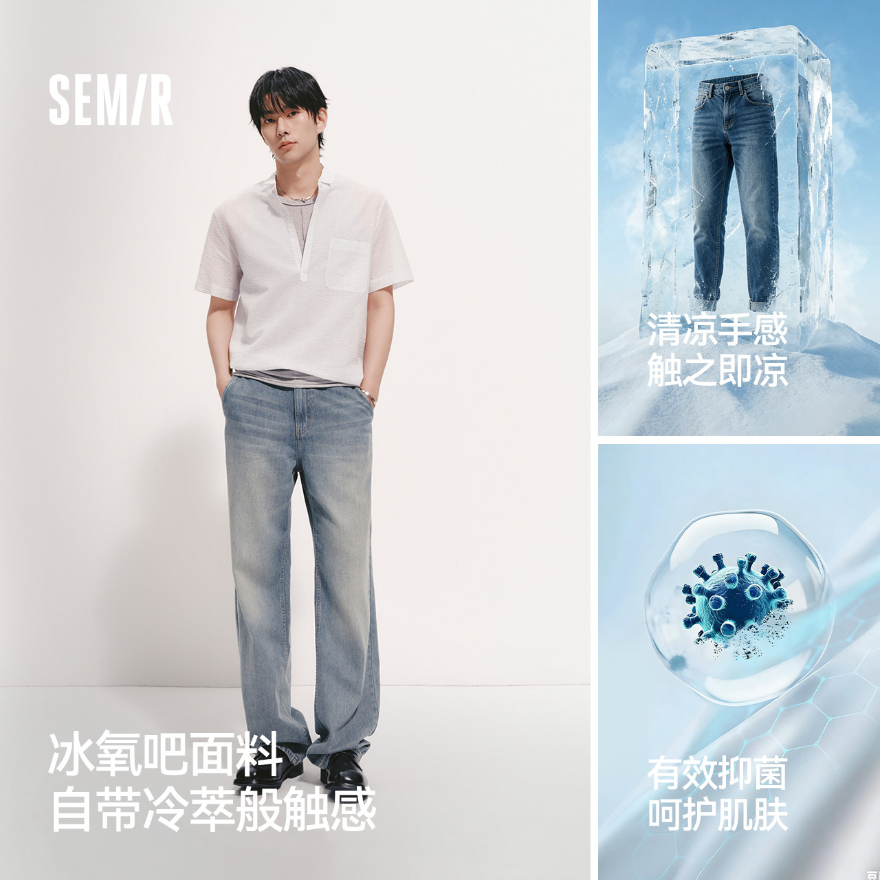 森柔|森马牛仔裤男夏季美式宽松舒适直筒裤复古水洗薄款纯棉长裤