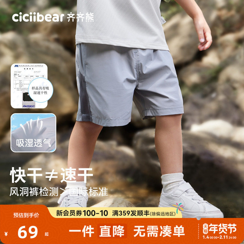 [速干防晒凉感风洞裤]齐齐熊男童防蚊裤夏季宝宝短裤儿童裤子女童