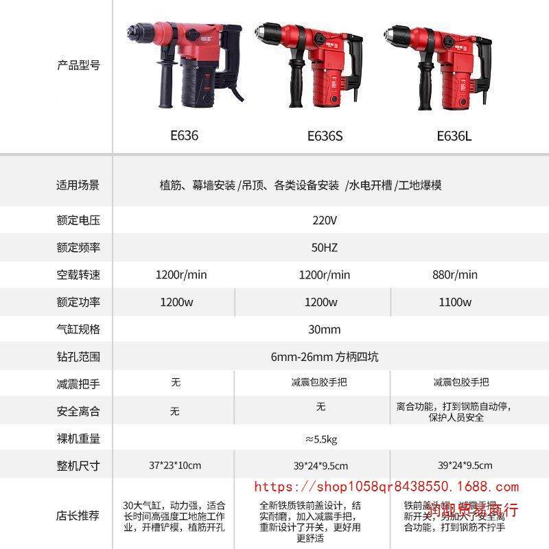 恒丰E636/S/L大功率两用电锤冲击钻电镐电钻工业级30气缸电动工具
