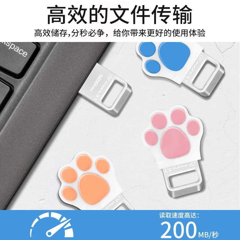 金士顿64G可爱猫爪保护套U盘128G卡通送女生礼物大容量优盘256GB