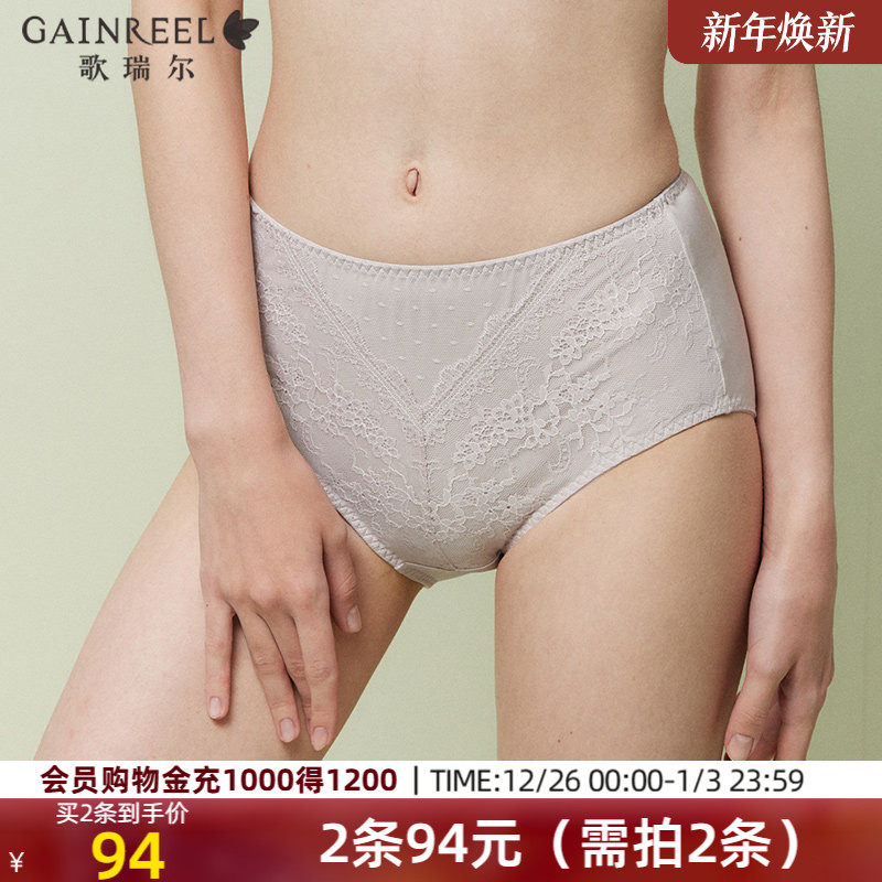 歌瑞尔蕾丝内裤女2025新款性感纯欲透气全棉裆亲肤中腰女士平角裤