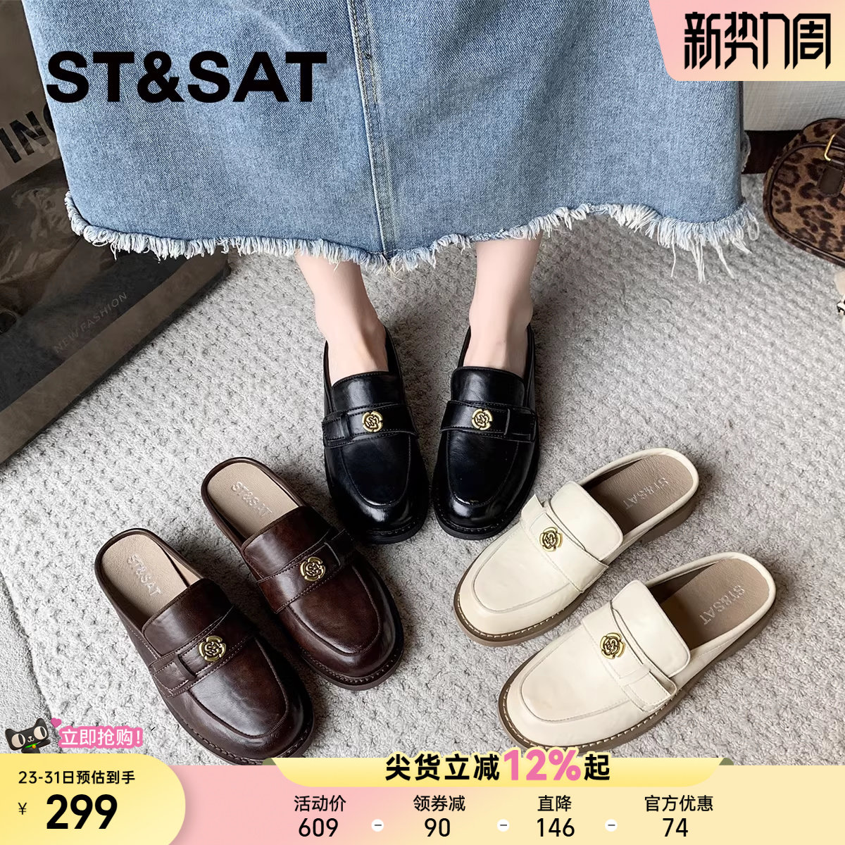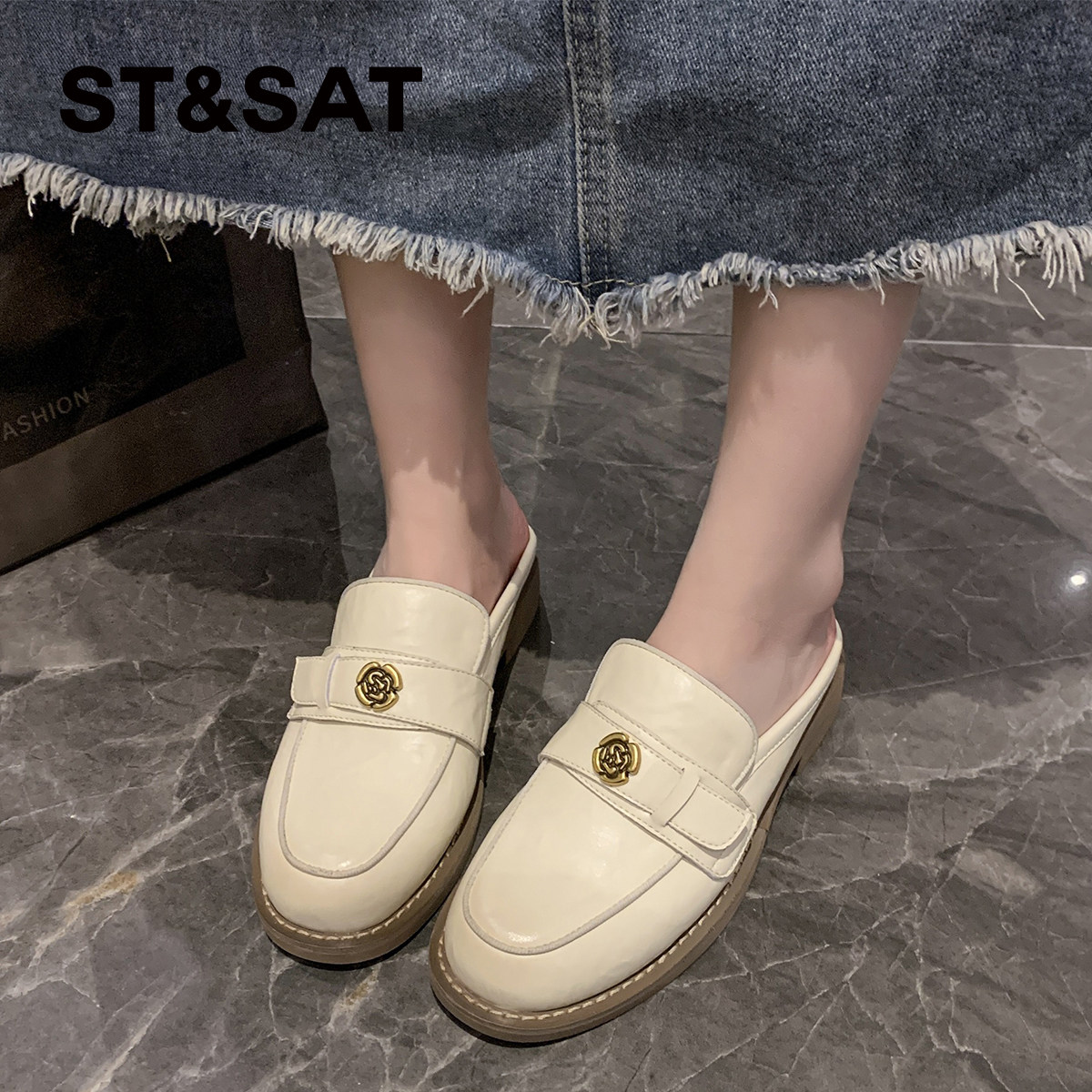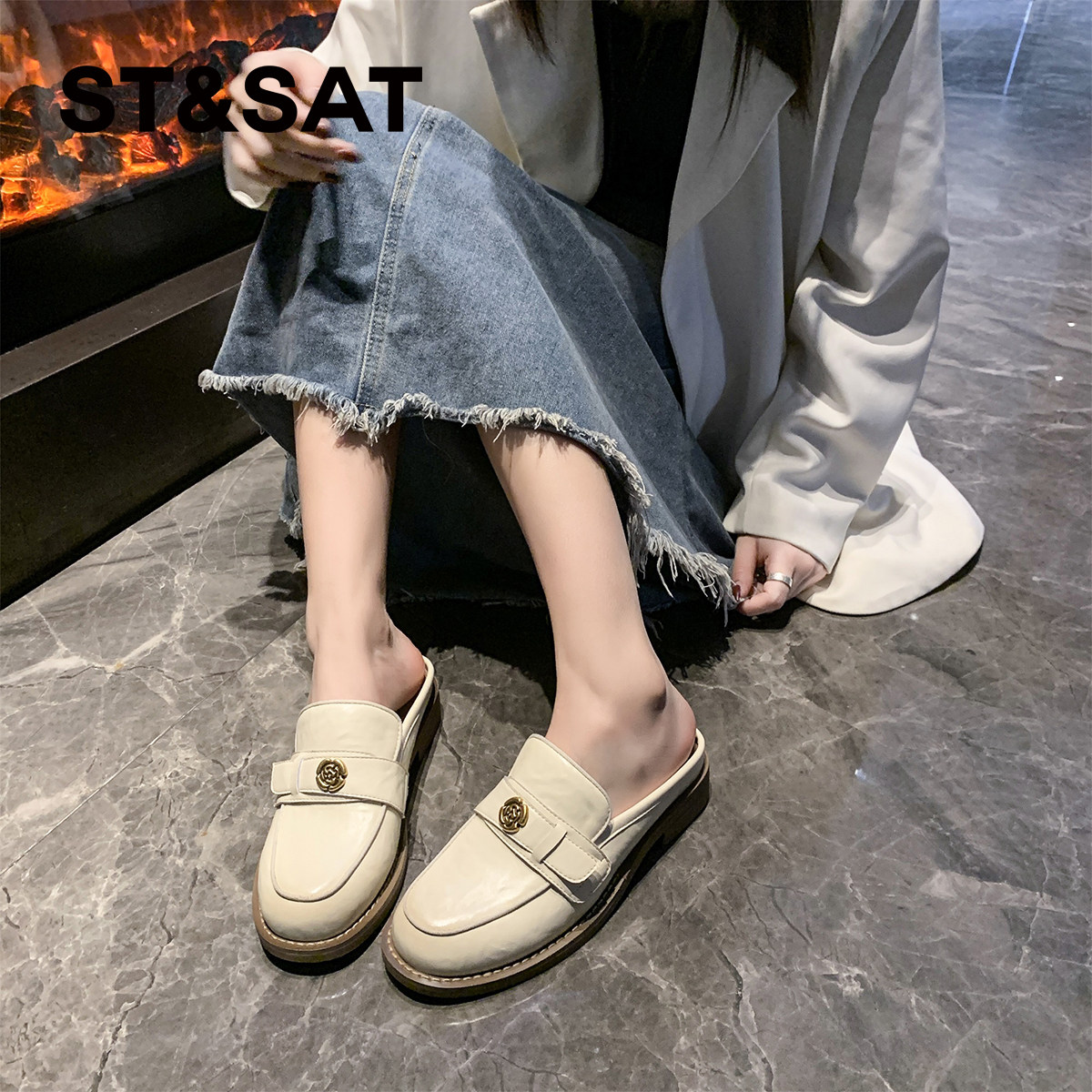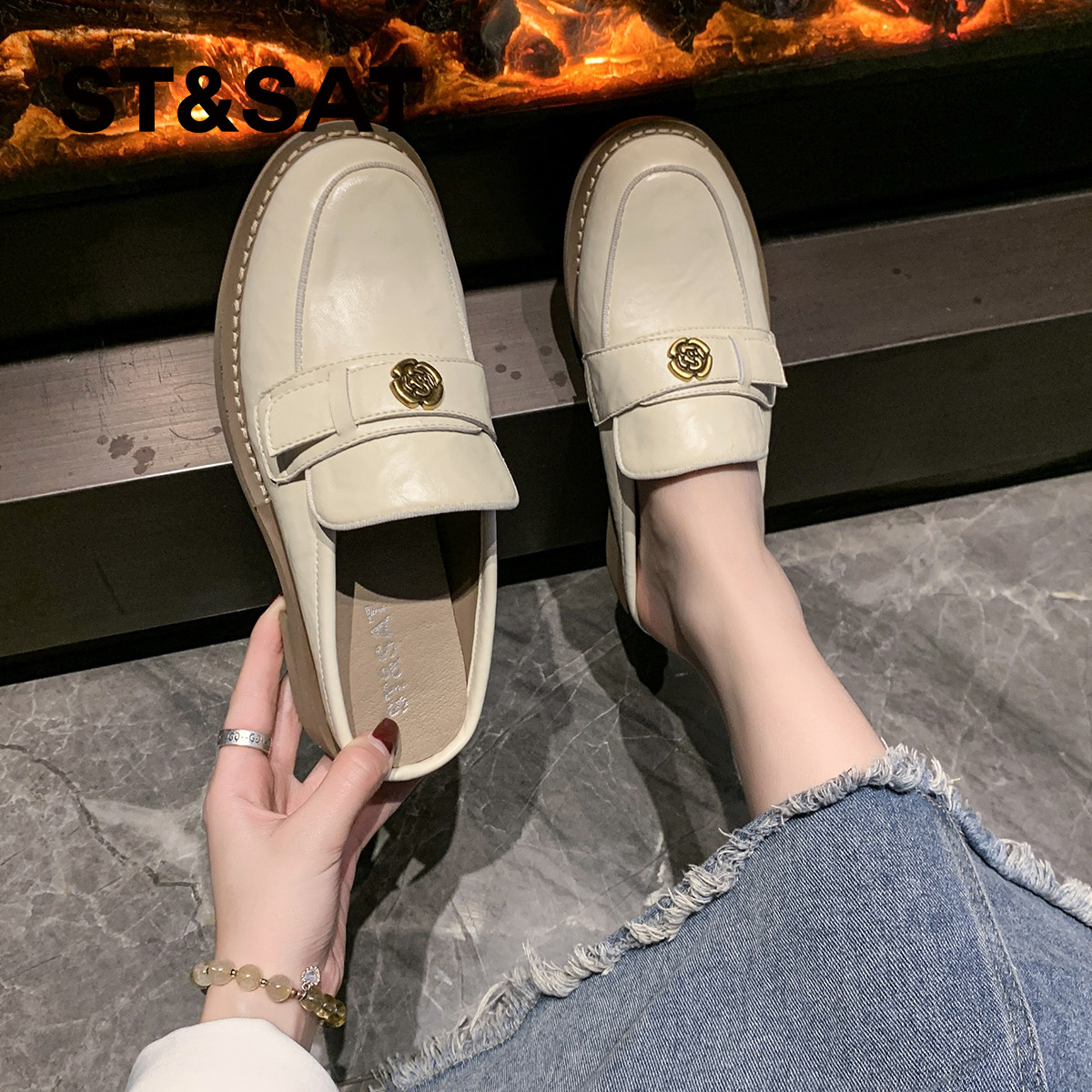 星期六山茶花包头半拖鞋女外穿2025新款夏季懒人鞋穆勒鞋凉拖鞋子