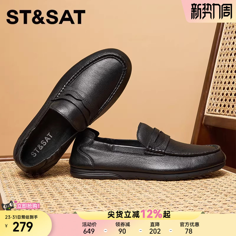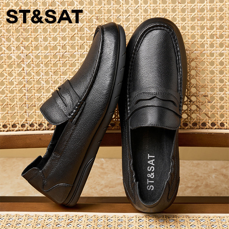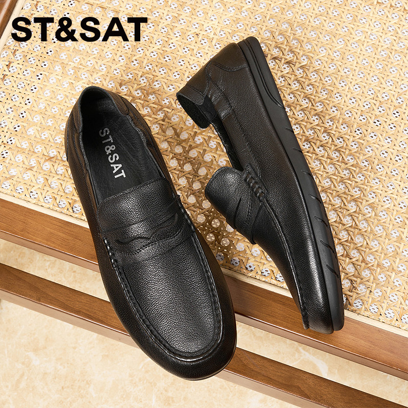 星期六男士休闲皮鞋新款春季透气软底豆豆鞋一脚蹬懒人鞋男鞋
