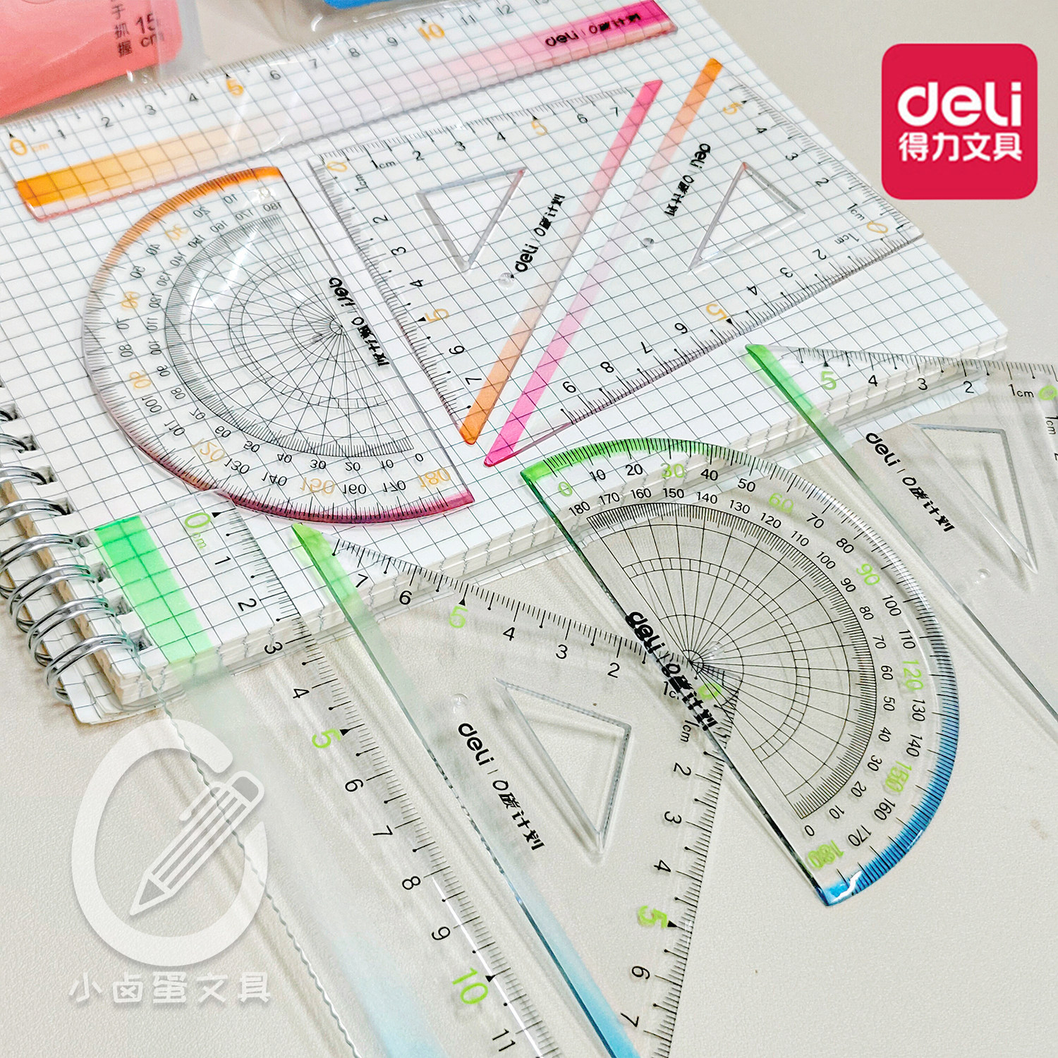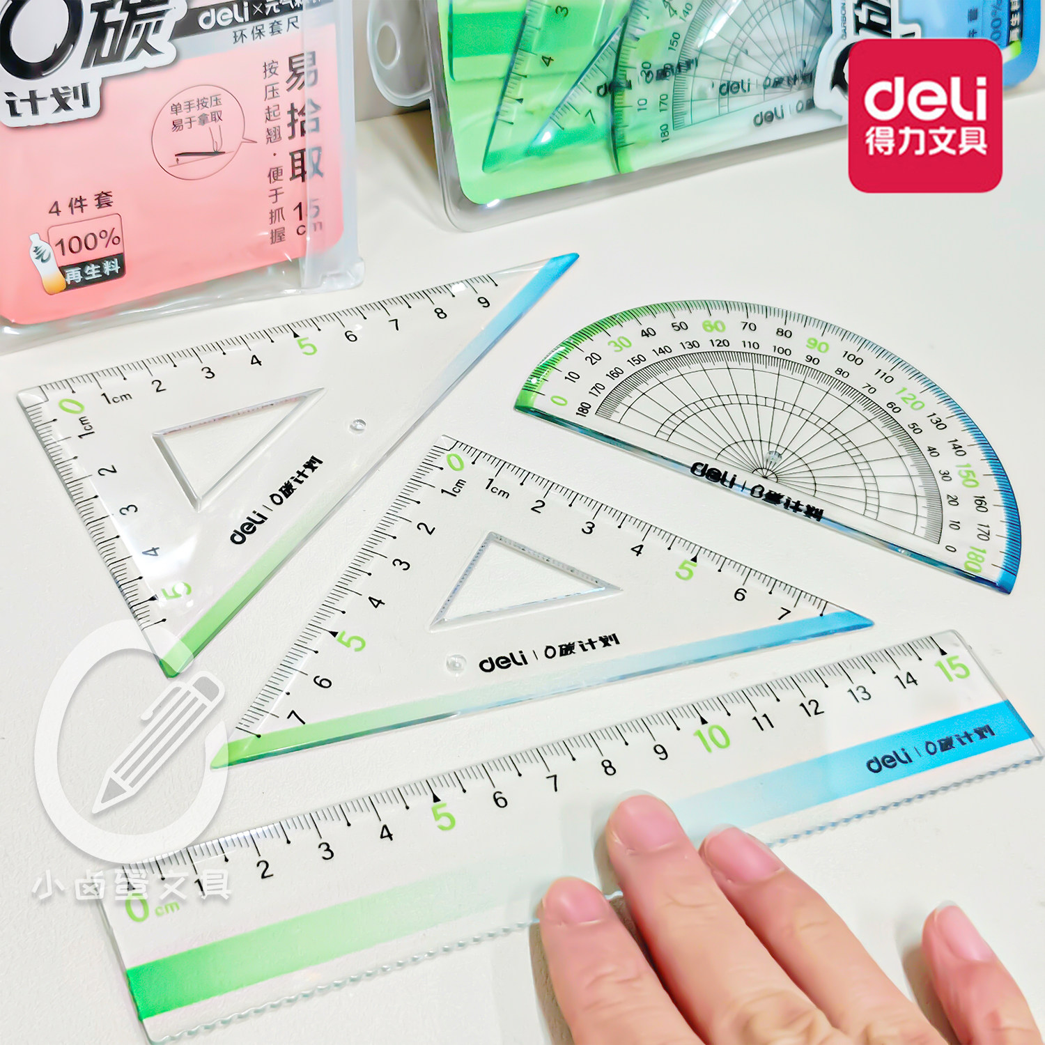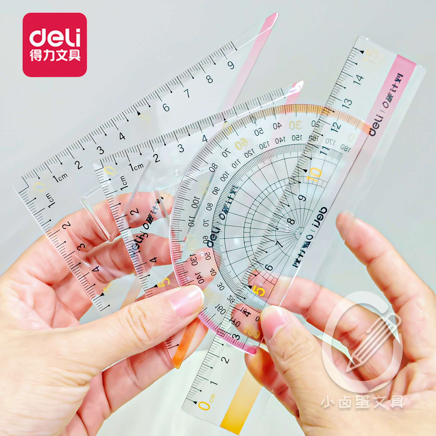 得力文具4件套三角板量角器直尺子渐变色学生办公用品按压易拾取