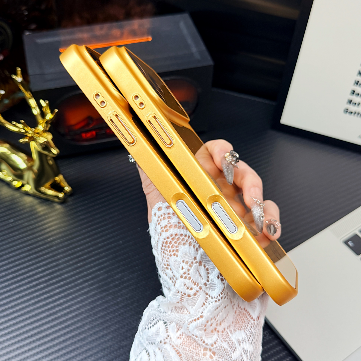 康宁玻璃黄金色秒变17大视窗适用iPhone16promax手机壳新款苹果17pro镜头全包15磨砂防摔14保护套13高级女款1