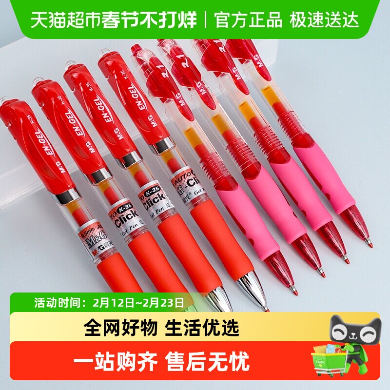 晨光红笔教师专用批改作业红色中性笔红笔学生0.5红色按动中性笔