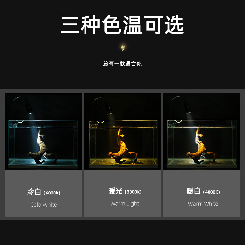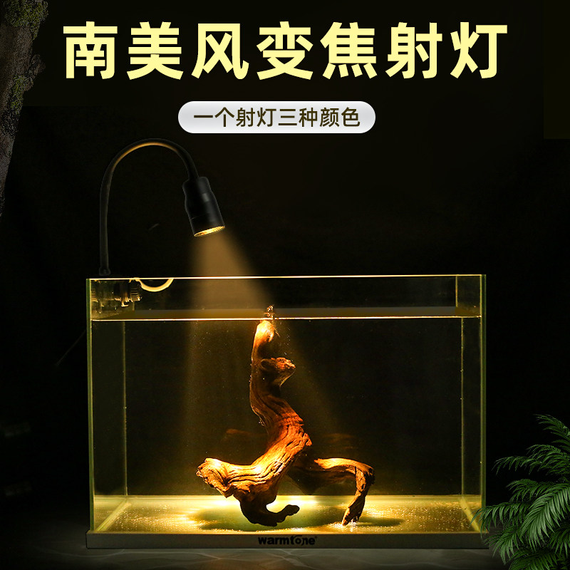 鱼途鱼缸射灯水族变焦灯LED照明调光三色夹灯南美造景小型水草灯