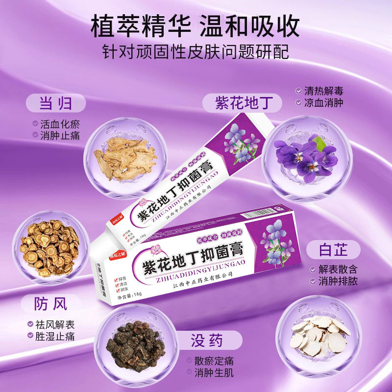 紫花地丁透皮抑菌膏皮肤止痒全身痒外用草本乳膏旗舰正品健康蚊虫