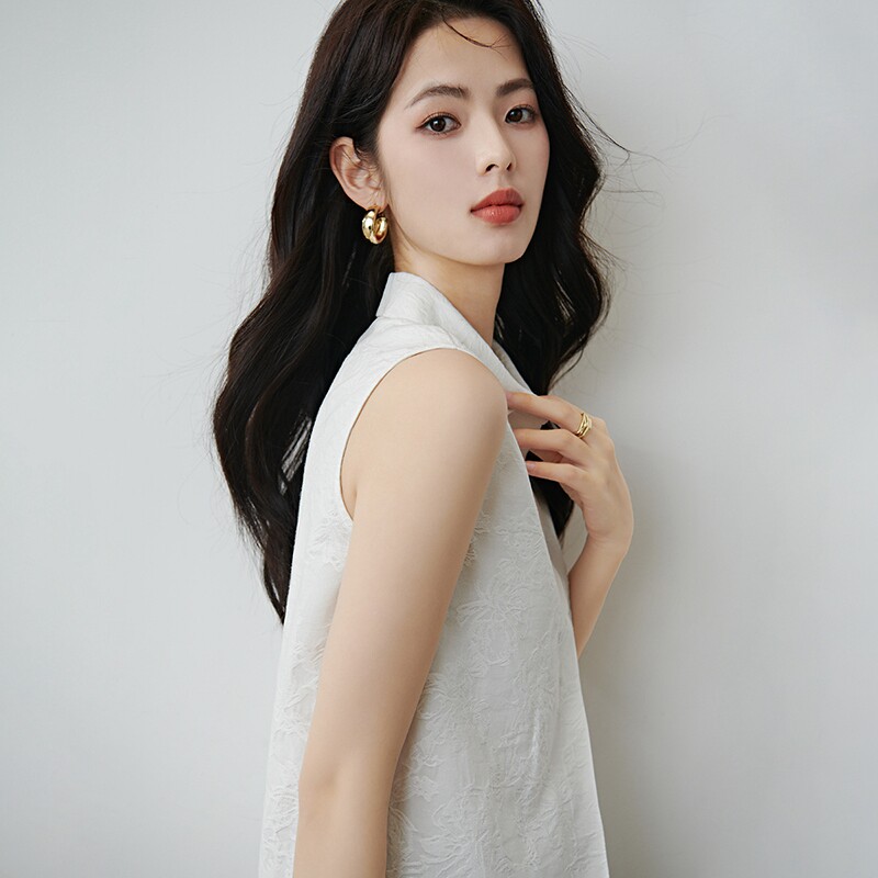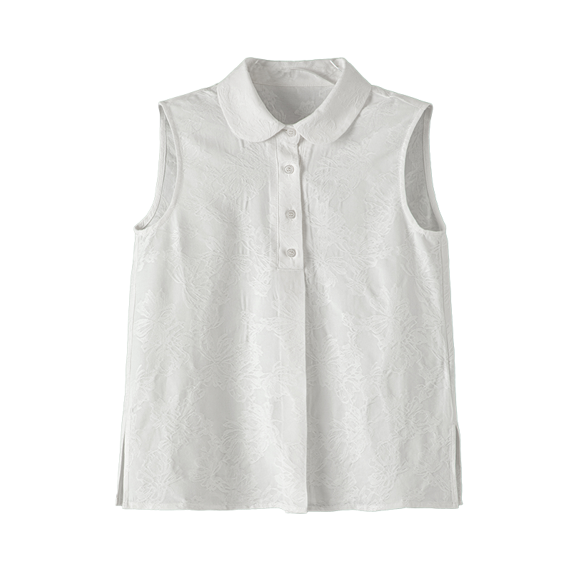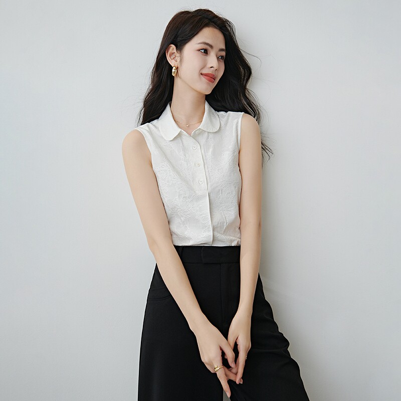 晚白2026年春新款时尚翻领上衣暗纹提花叠搭伴侣单穿无袖衬衫女