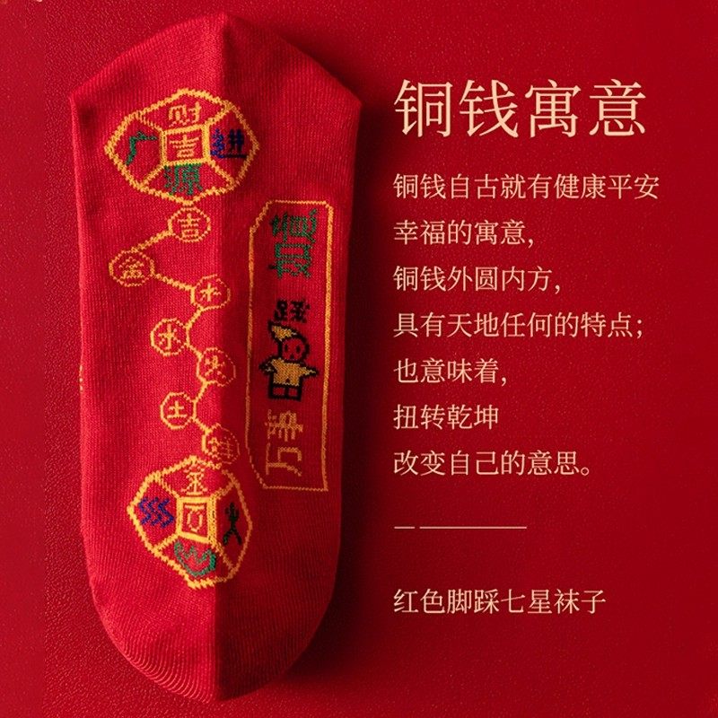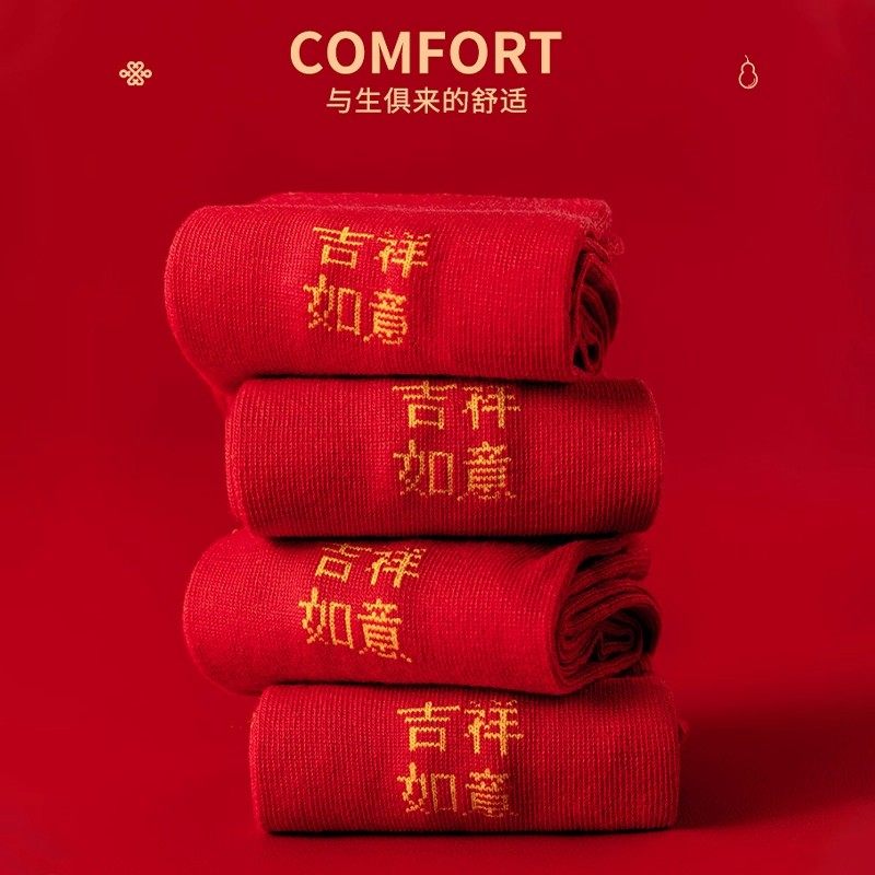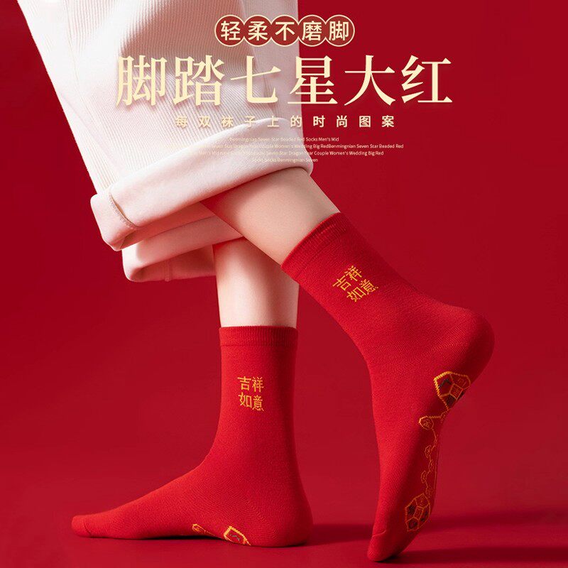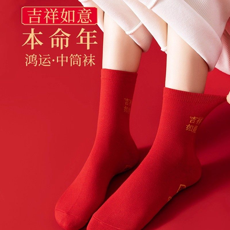 20双红色袜子男女本命年中筒袜结婚情侣鸿运新年喜庆转运福袜吉祥