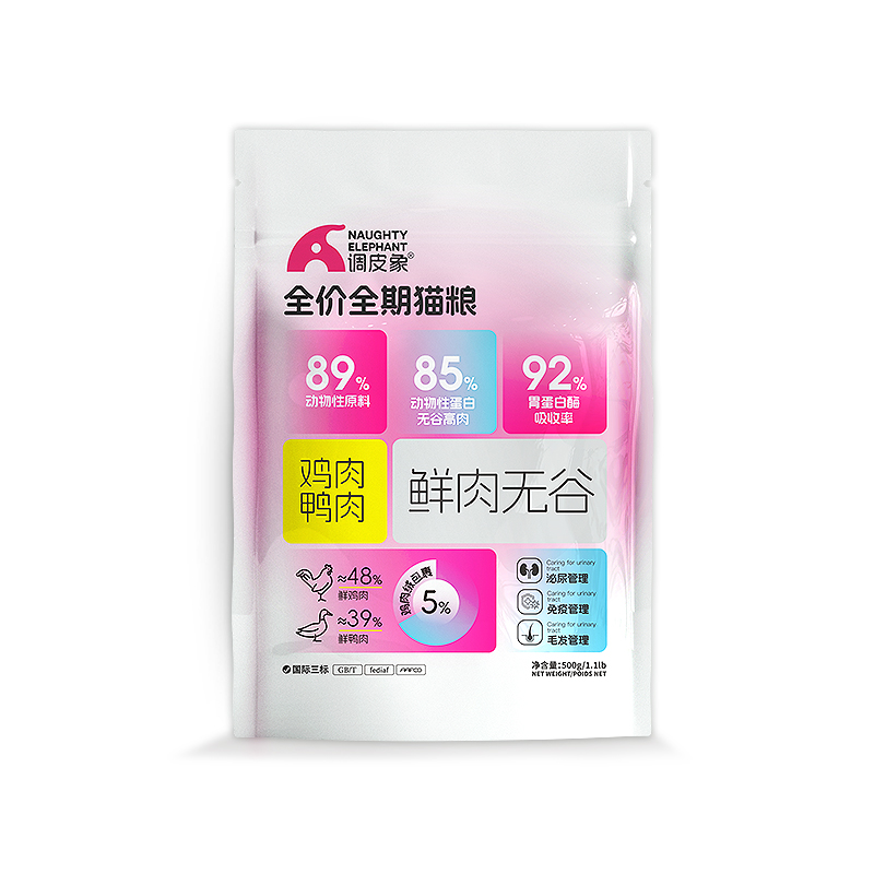 调皮象鲜肉全价高肉猫粮幼猫冻干尝鲜试吃装500g鱼油鸡肉盛宴海陆