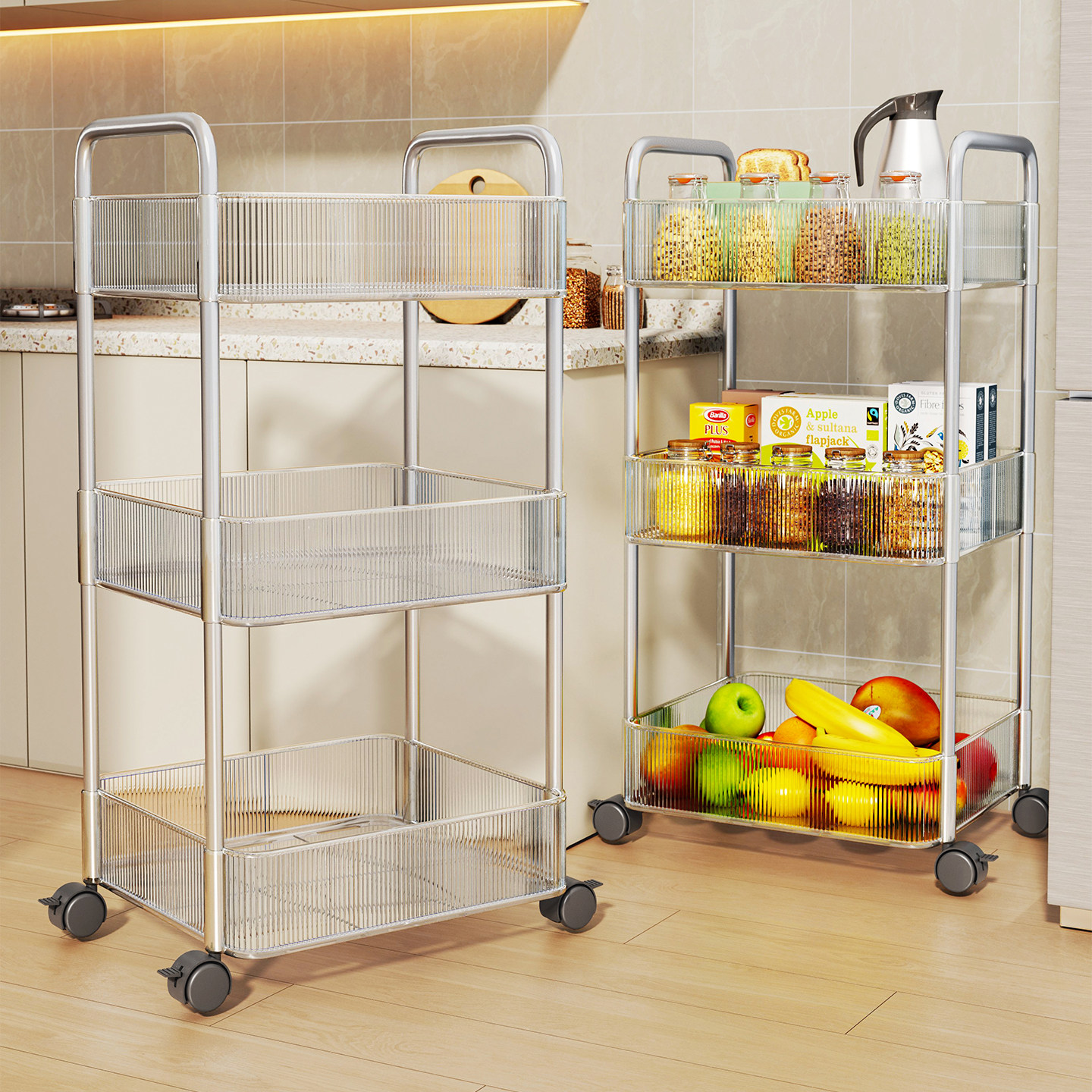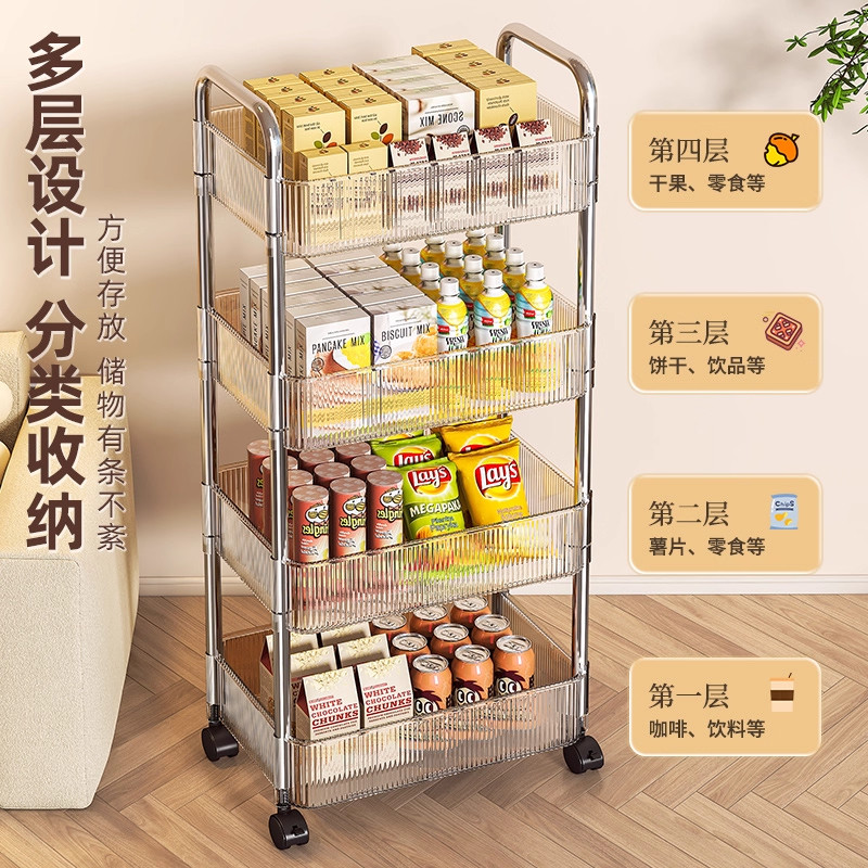 厨房置物架亚克力家用落地多功能收纳架多层放水果蔬菜储物架推车