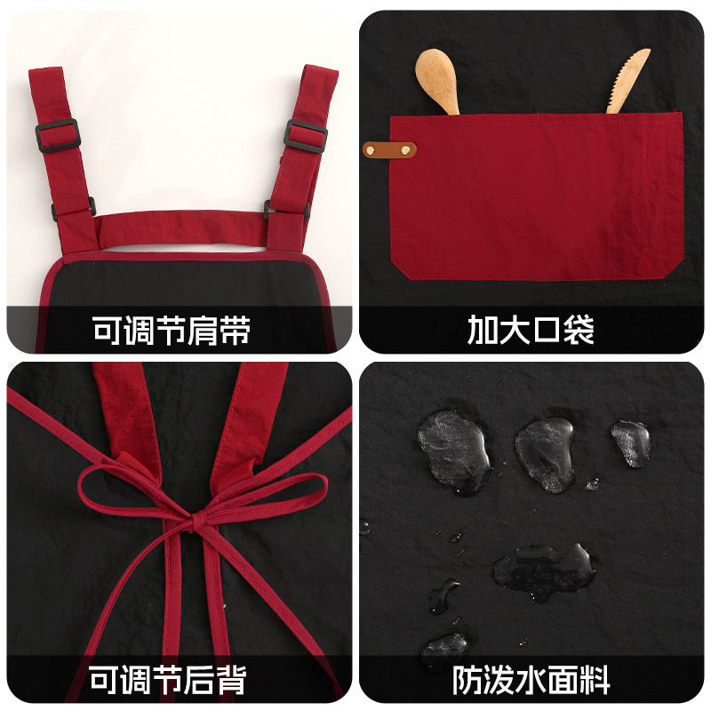 可调节肩带围裙餐饮专用男女同款居家简约拼色背带工作服大口袋