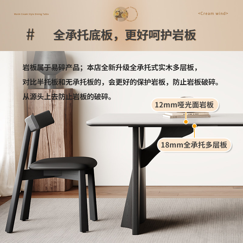 黑色实木餐桌长方形现代简约设计师2025新款复古哑光纯白岩板餐桌