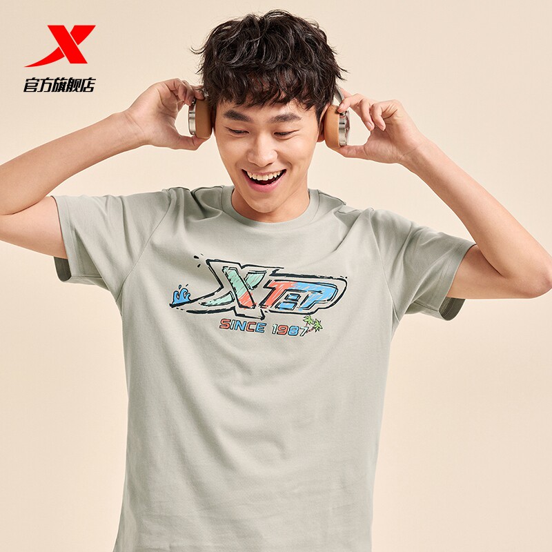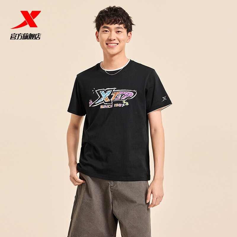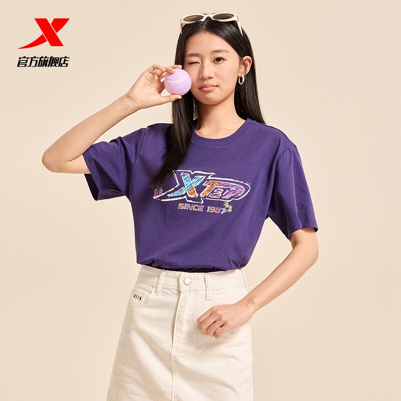 特步圆领短袖T恤男官方新款夏季情侣休闲半袖上衣简约女运动体恤