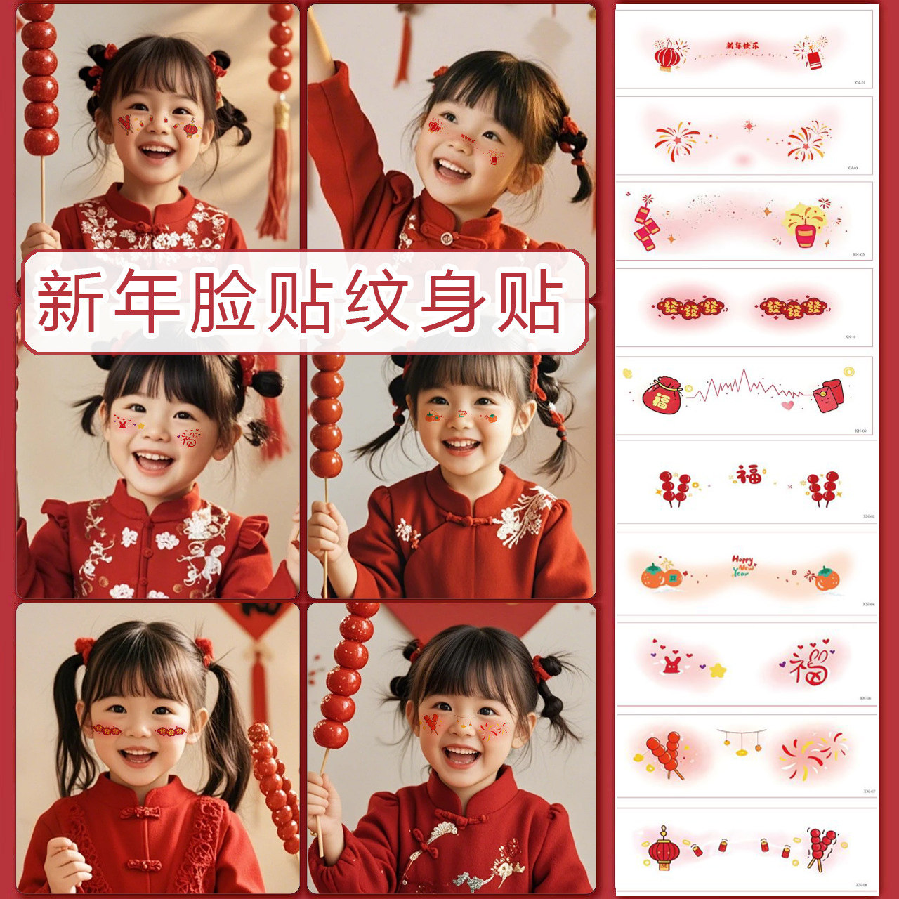 新年妆容贴马年脸贴成人儿童脸部彩绘甜美少女聚会派对腮红化妆贴纸防水纹身贴节日装扮过年写真拍照cos道具