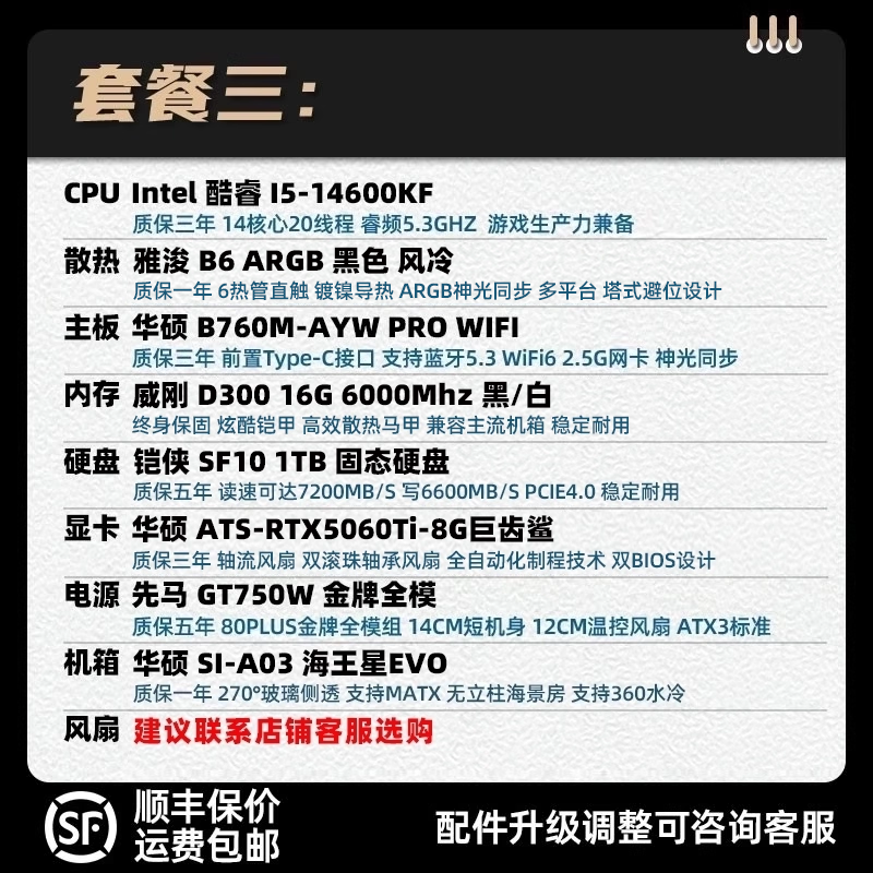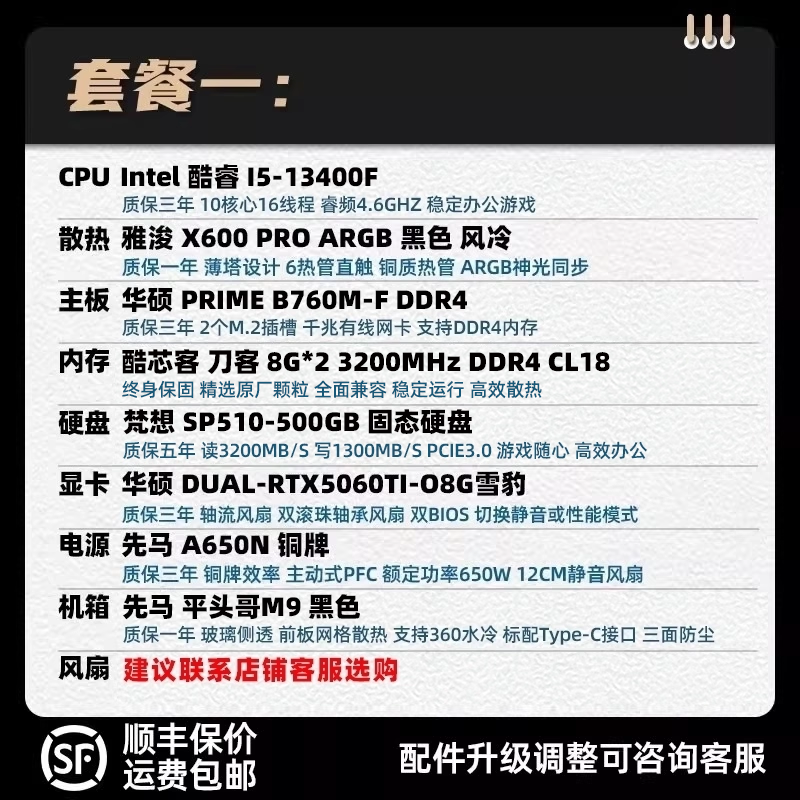装机猿玩家店华硕DUAL/ATS/TUF-RTX5060Ti-8G/13400F电竞游戏主机
