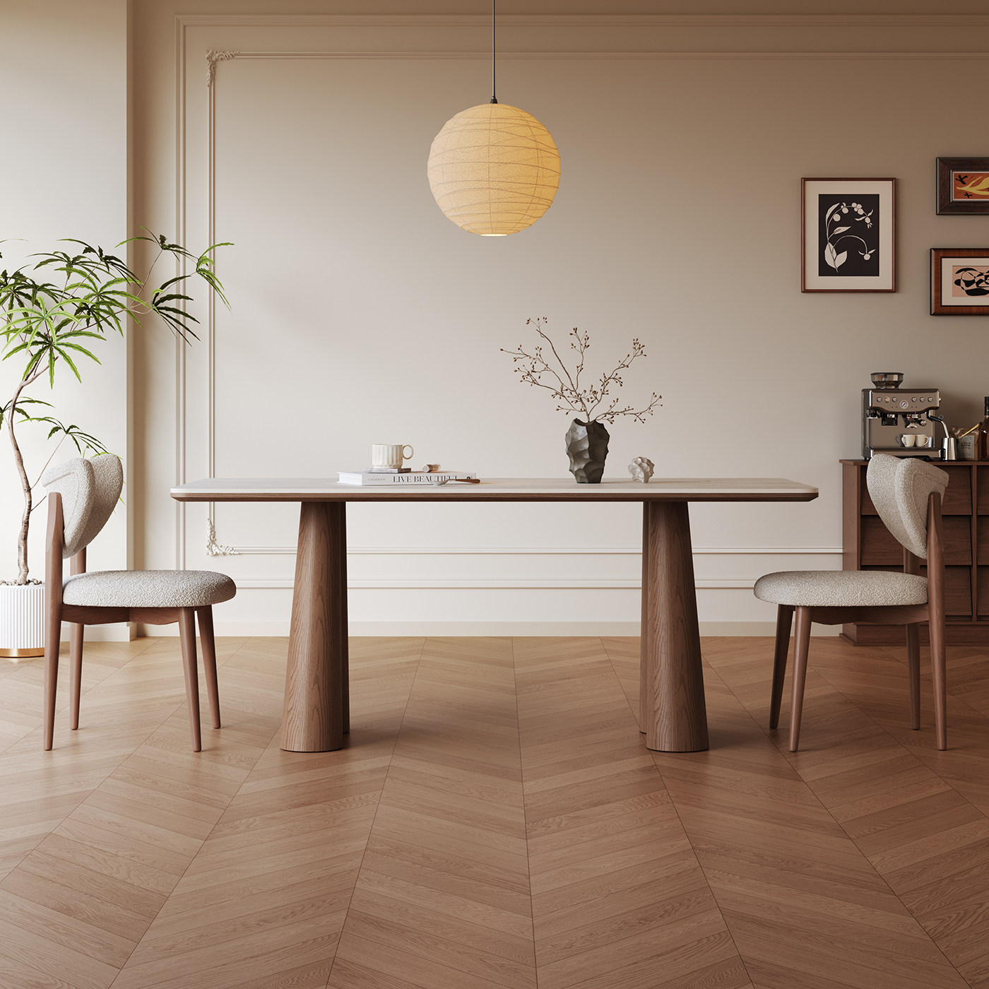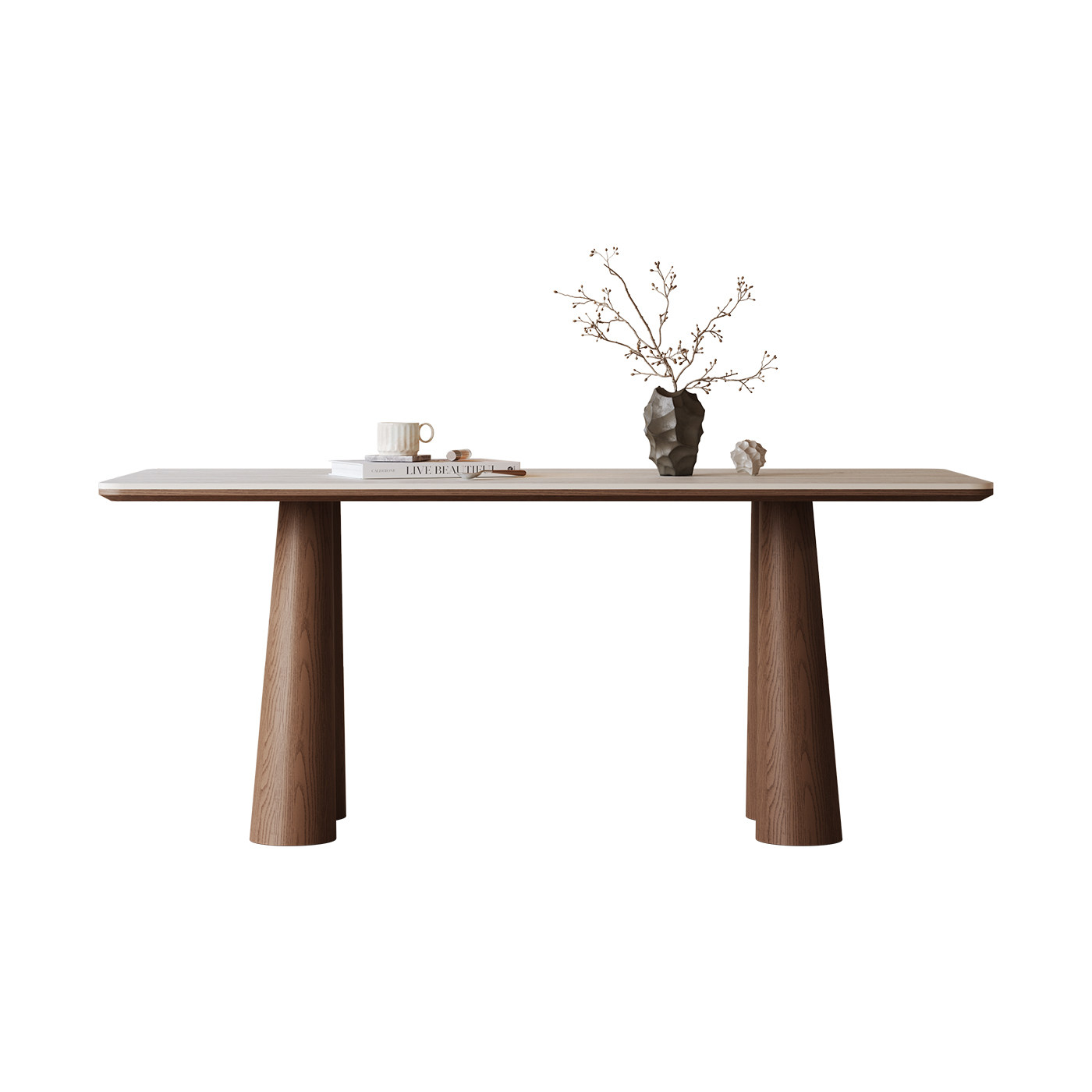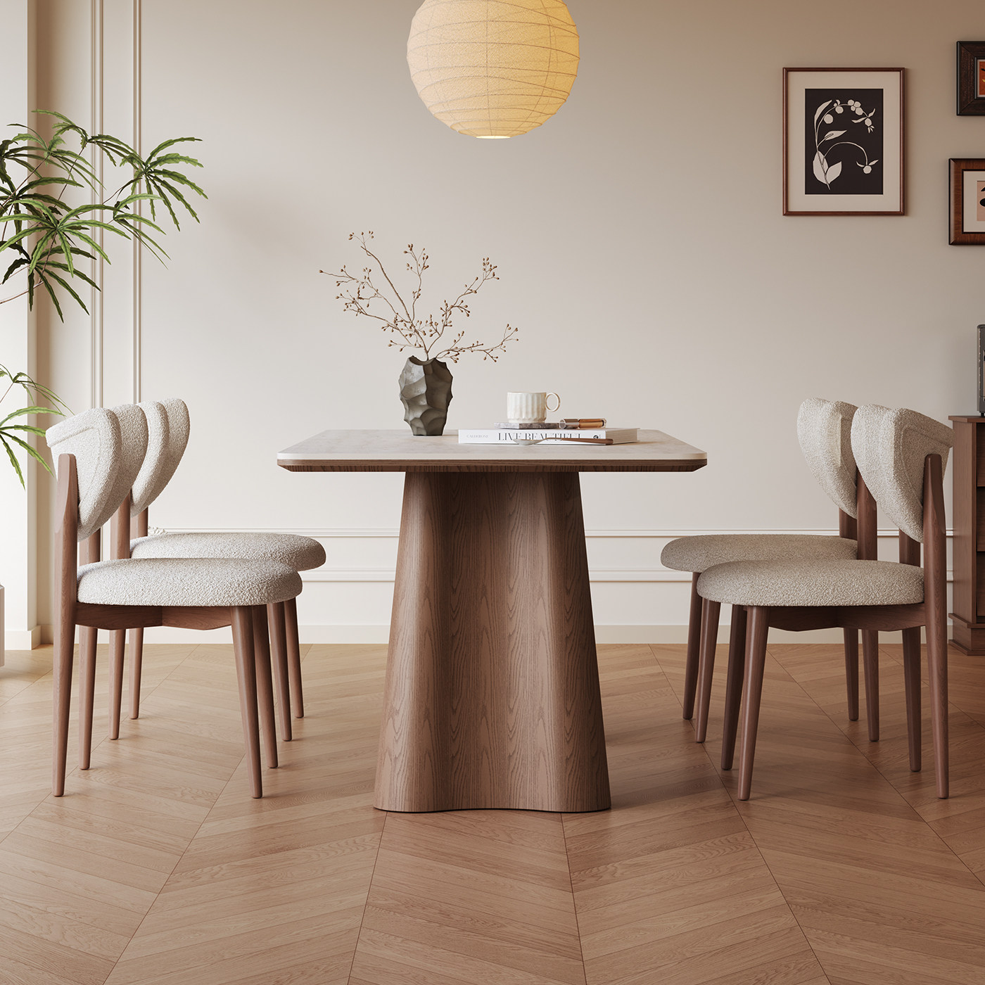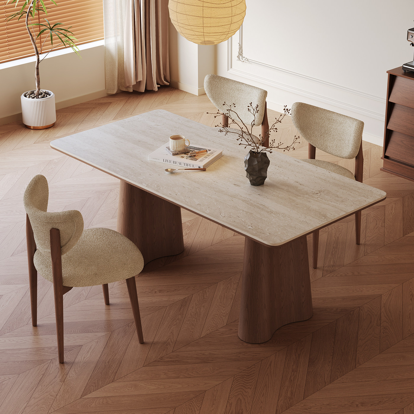 长方形岩板餐桌洞石家用小户型高端2026新款中古风全托实木餐桌椅
