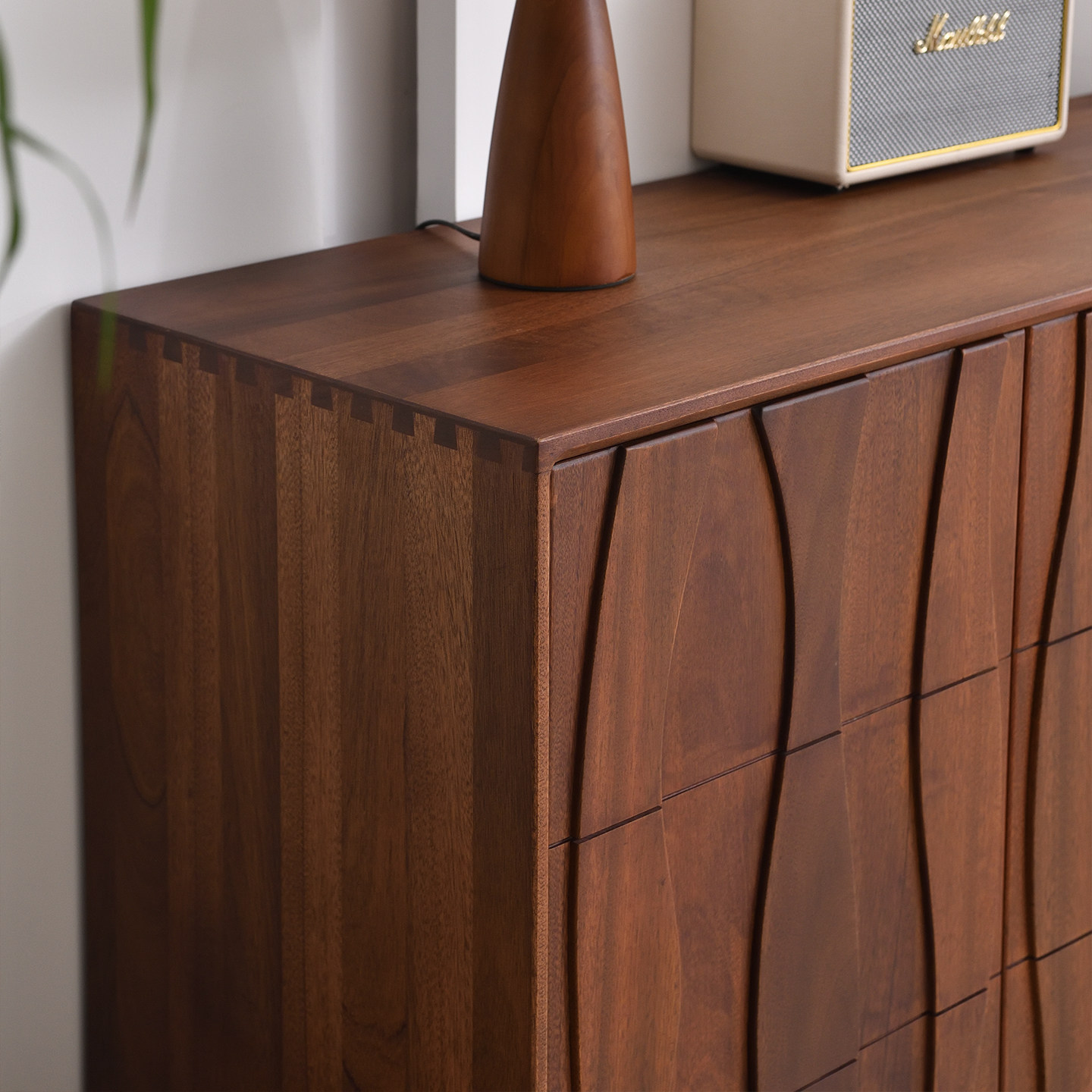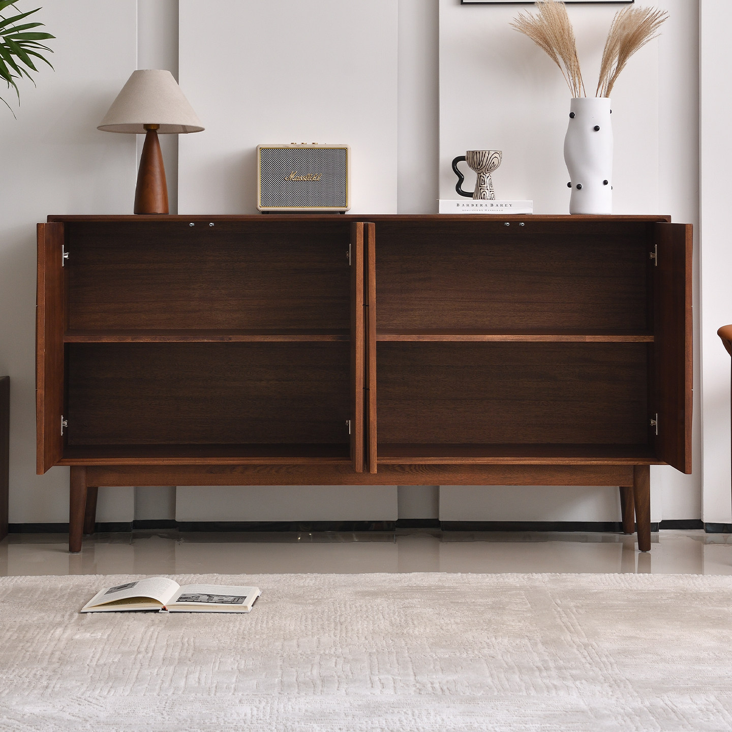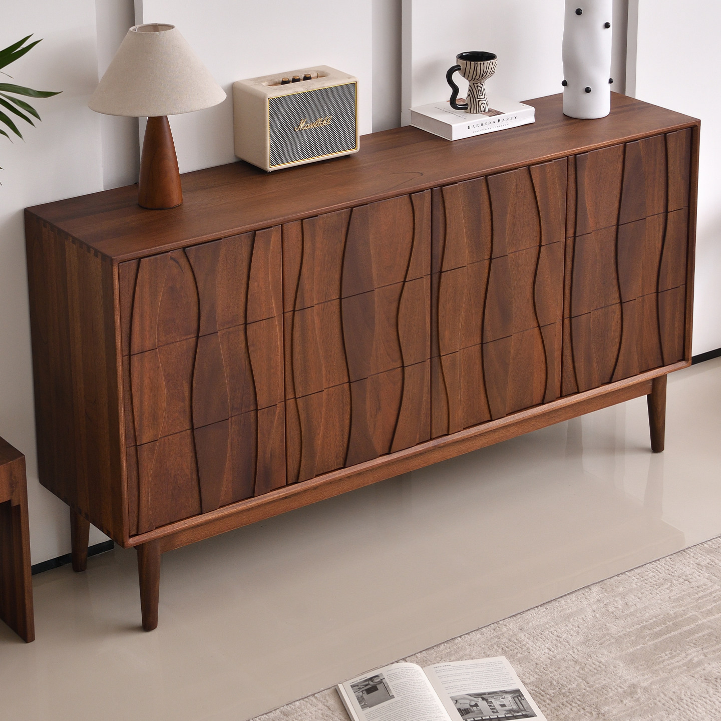 全实木餐边柜靠墙一体中古风核桃木客厅家用储物玄关隔断收纳柜