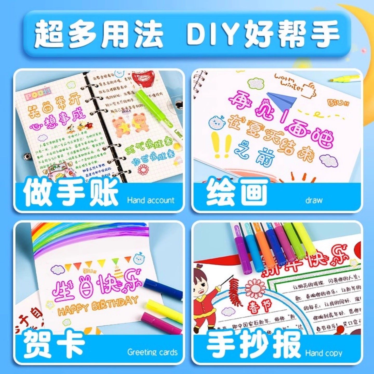 果冻笔3D立体手账笔网红彩色手账专用笔学生用标记笔划重点荧光笔双色轮廓笔闪光啫喱笔指甲果汁笔手抄报画笔