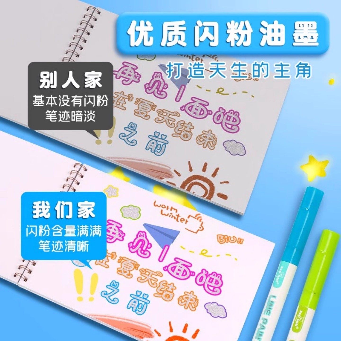 彩色闪光笔学生用儿童闪亮轮廓闪粉高光水彩笔啫喱发光流沙银光